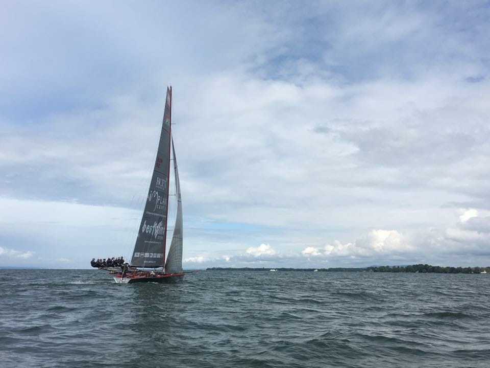Raffica_első_jel_RomanshornAz idén 66. alkalommal rendezték meg a német Kékszalagnak is nevezett Rund Um tókerülő versenyt. A Boden-tavi tókerülőt 1951 óta évente rendezi a Lindauer Segler Club. A verseny különlegessége, hogy a hajók nem reggel, hanem este fél nyolckor rajtolnak, így tulajdonképpen a 100 kilométeres távot javarészt éjszaka, sötétben teszi meg a mezőny.
