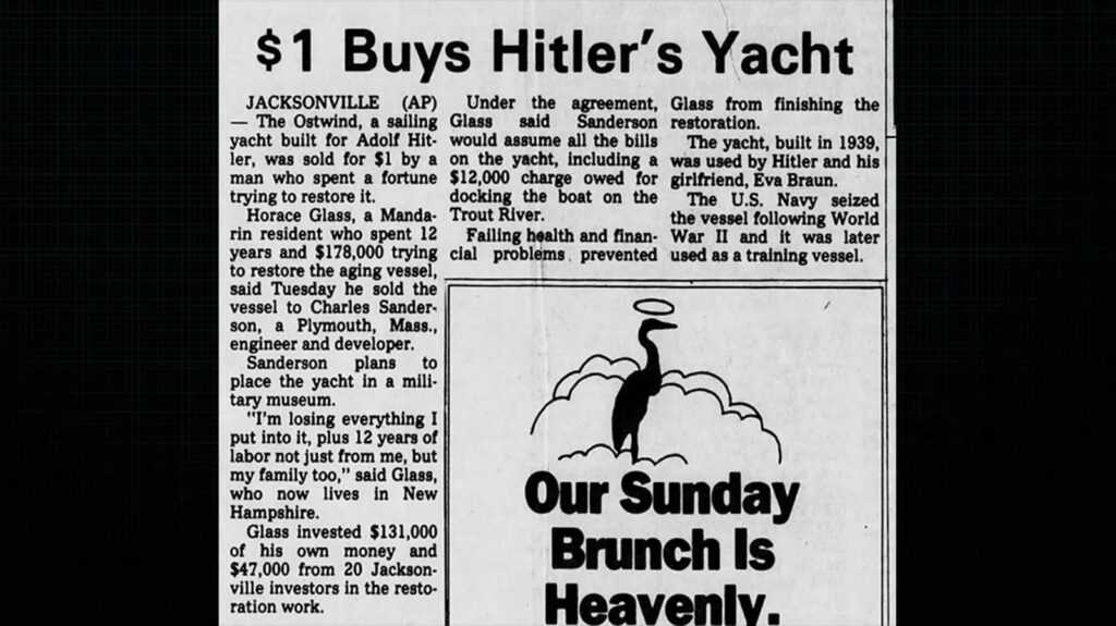 Közéjük tartozott Charles Sanderson, aki 1 dollárért vásárolta meg az Ostwindet, azt tervezte, hogy második világháborús múzeummá alakítja át Massachusettsben. Az ötlete azonban feldühítette a helyi tisztviselőket és lakosokat, a projekt kútba esett, Sanderson végül a kikötőhelyet sem fizette ki. Így került a hajó J. J. Nelson, a kikötő tulajdonosának birtokába, ő a floridai Jacksonville-be vitte, ahol évekig porosodott egy raktárban, de legalább nem romlott tovább az állapota. Ez a helyzet azonban csak addig tartott, amíg híre nem ment, hogy az Ostwind Hitler jachtja: többször is megrongálták, az emléktárgyvadászok kifosztották, sőt még fel is gyújtották. Nelson fenyegető leveleket kapott, miközben egy neonáci csoport 500 ezer dollárt ajánlott neki, hogy a jachtot alakítsa át szentéllyé.