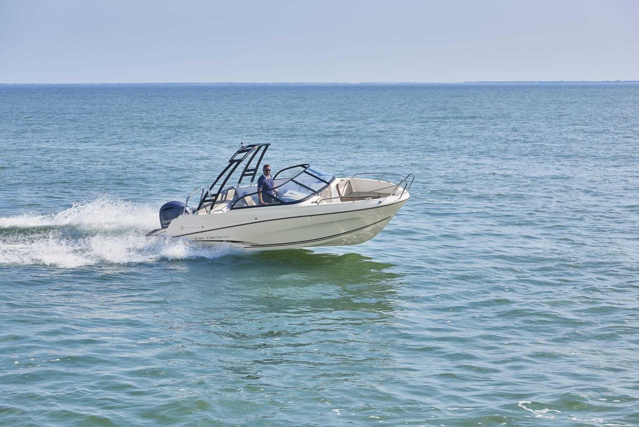 Úgy tűnik azonban, hogy a Jeanneau gondolt a vadulásra még nyitott, de már idegkímélő pecázásra vágyó családapákra is. A két új Cap Camarat motoros a BR melléknevet kapta, ami természetesen az erőhajók kedvenc ergonómiájára utal: a bowrider típusú, feszített íjhoz hasonlatos orrkialakítás komoly előnyökkel jár, ha tényleg nagy sebességgel kell stabilan közlekedni a csapódó hullámok hátán.