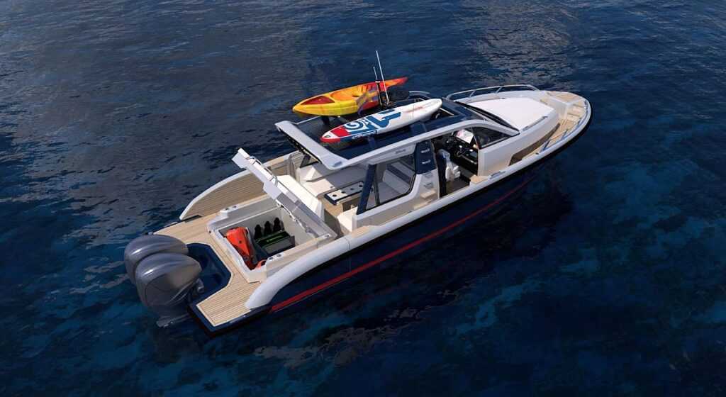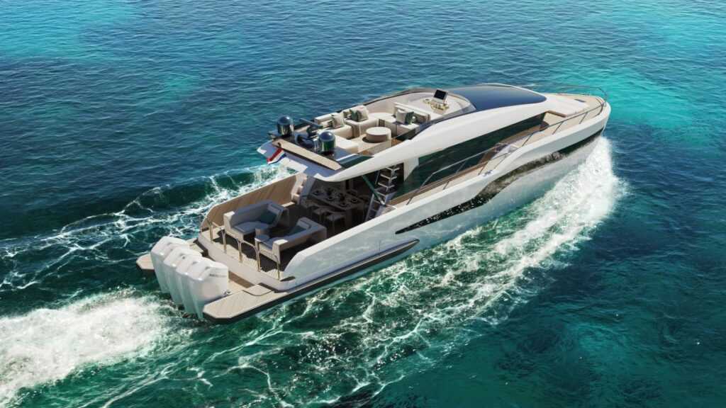 Luxus többtestűként hirdetik – teljes joggal -, de inkább egy hibrid, amelyik egy 27 méteres egytestű hajó térkínálatát nyújta. A Philippe Briand által tervezett hatékony hajótestek felére csökkentik az üzemanyag-fogyasztást, miközben közöttük teljesen automatizált bocigarázs és hatalmas strandklub található, amelyet a lehajtható oldalelemek tovább szélesítenek. Lenyűgöző modernista belső, három-négy kabinnal, köztük egy, a hajó teljes szélességét kitöltő tulajdonosi lakrésszel.