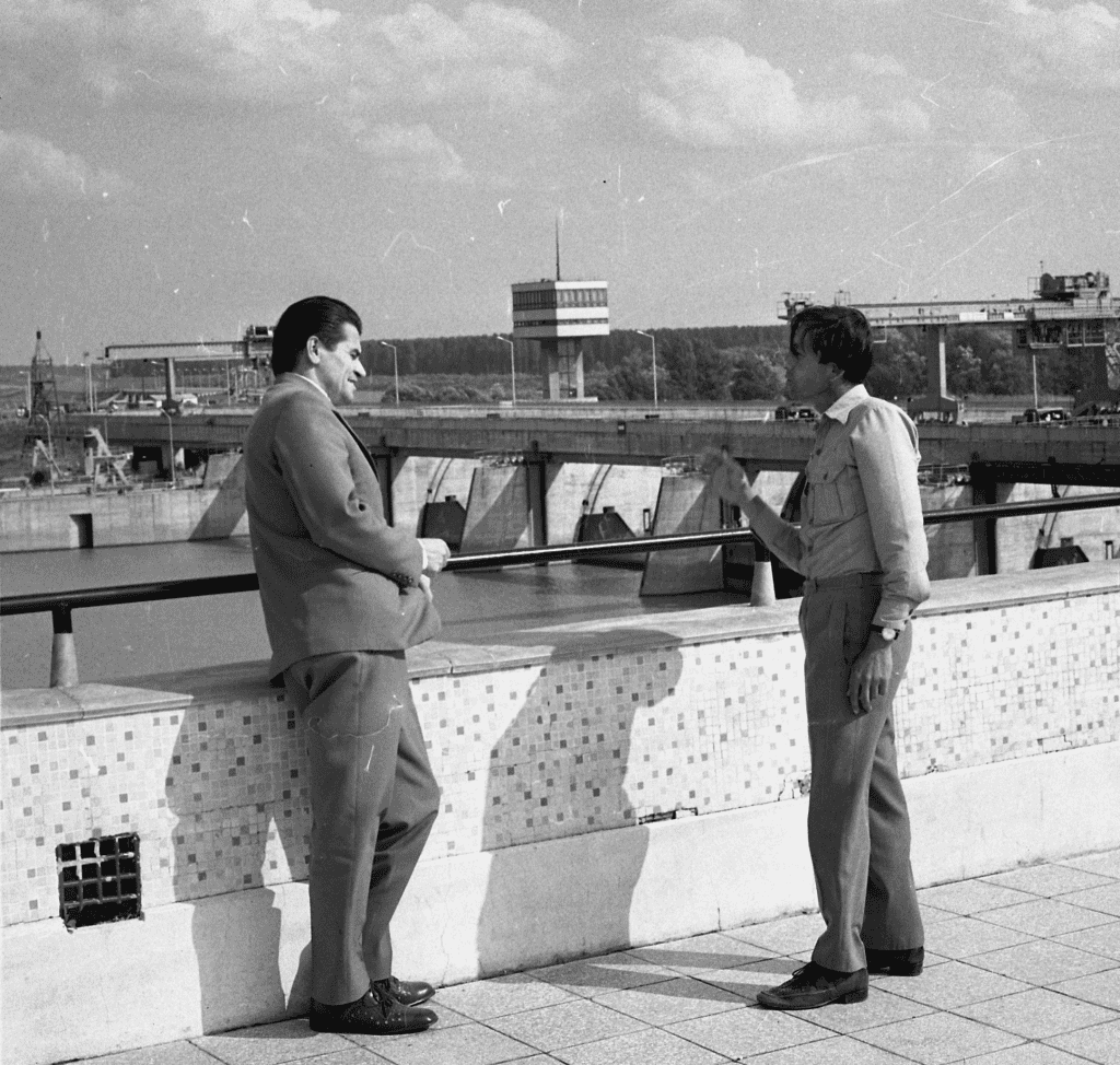 1967 októberében volt az első kapavágás a Kiskörei vízlépcső építési területén. Az Országos Vízügyi Beruházási Vállalat beruházásában történt meg a kivitelezés (főmérnöke Szántó Miklós), míg a tervek a Viziterv mérnökei által (főtervező Dóra Tibor) készültek.