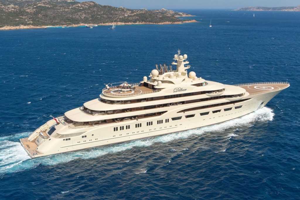 A 2016-ban vízre tett Dilbar is a német Lürssen dokkjaiban készült. A tulajdonosa Aliser Uszmanov, aki a becslések szerint 350 millió fontért, vagyis mindegy 138 milliárd forintért juthatott hozzá a 156 méternyi tengeri luxushoz. Fedélzetén akár rövidpályás úszóvébét is tarthatnának, hiszen egy 25 méteres, 6400 köbméteres medencét alakítottak ki rajta. Belsejét a Winch Design tervezte „ritka és exkluzív luxusanyagokból”, de ennél többet nem árultak el róla. Az elképesztően kecses hajótest űrtartalma 15 850 tonna.