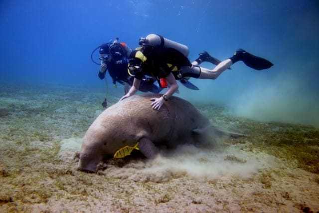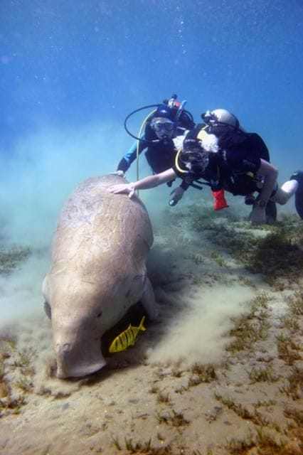 Nemrégiben épp a dugongpapát kísértünk el menetrend szerinti falatozására. Mikor mellé szegődtem és legelést imitálva nem tágítottam mellőle. A böszme állat a maga módján, komótosan vette tudomásul jelenlétemet. Mégis felfigyelt rám. Lám-lám egy újabb jelentkező az egyre fogyó neptun fűre! Élesebben kezdett figyelni. Erre óvatosan hanyatt feküdtem a homokos fenéken. Furcsa módon az volt a válasza, hogy ő is hanyatt vágta magát. Aztán a lamantin elkezdte utánozni a mozdulataimat. Próbaképpen apró buborékokat kezdtem ütemesen kifújni, mire ő is ezt tette! A hatalmas lamantin bika úgy látszik, játékos kedvében volt, vagy a maga módján próbált kommunikálni? Az esetet filmre vettük és amennyire tudtam, igyekeztem fotózni is. Viselkedése rejtély maradt. Hasonló viselkedést figyeltem meg az évek során több más faj esetében is. Napóleon halak, delfinek, ráják mind-mind csodálkozásra késztették sok búvár társamat. Vajon kommunikálni próbálnak ők is vagy csak néha jókedvükben tréfálkoznak? Vajon ezekben a teljesen más világban élő állatokban milyen gondolatok ébrednek velünk kapcsolatban? Ezekre a kérdésekre keressük együtt a választ minél több időt töltve a csend világában!