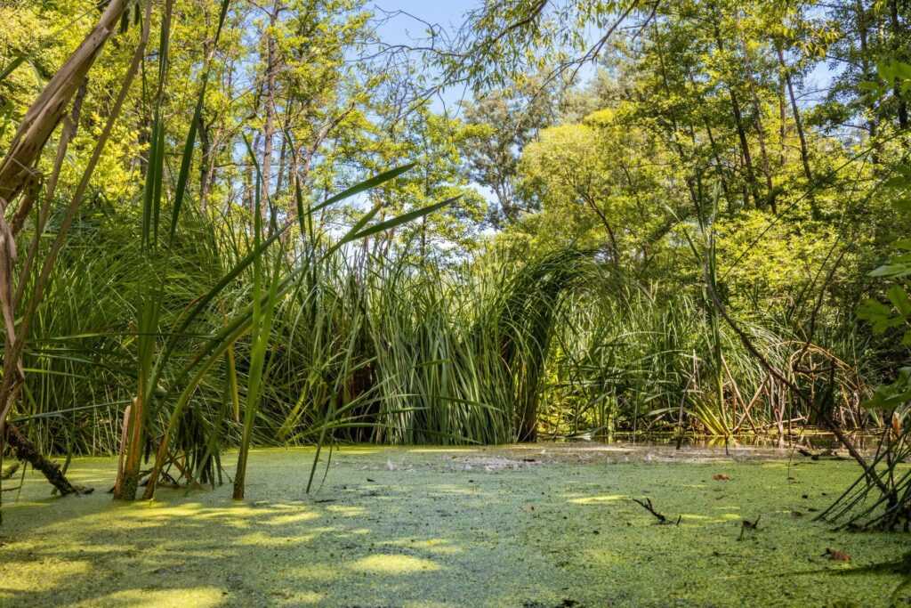 A szigetet övező vízállások növény- és állatvilágát is megismerhetjük, többek között a védett lápi csalánt és a vizet borító, a békalencsénél is apróbb és ritkább gyökértelen vízidarát, amely 1-1,5 mm-es nagyságával a világ legkisebb virágos növénye.