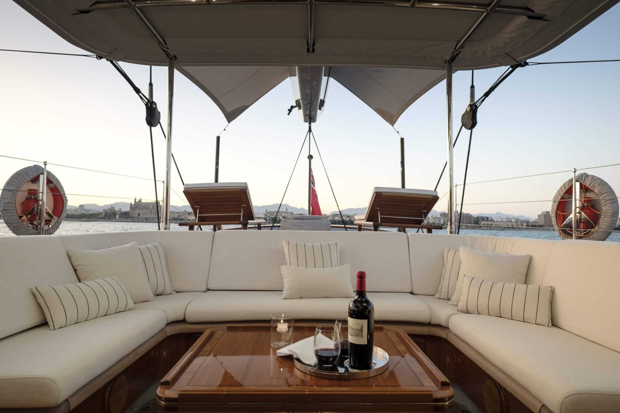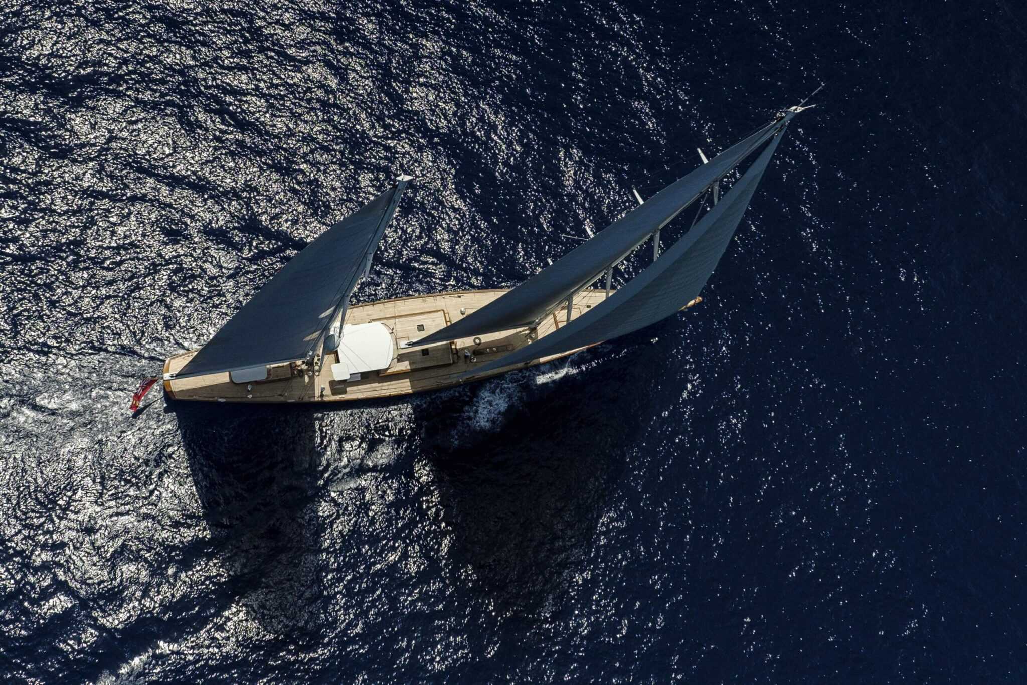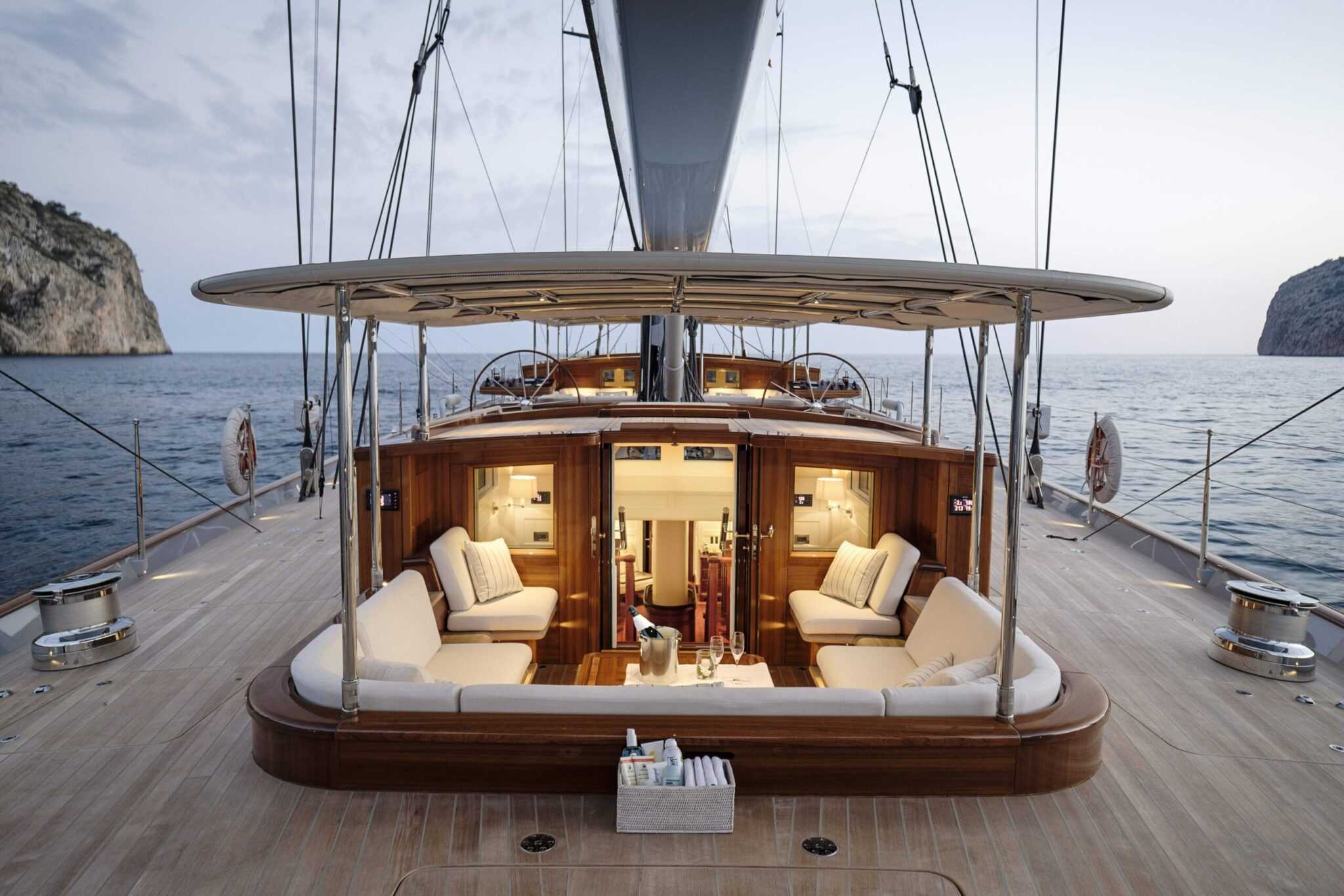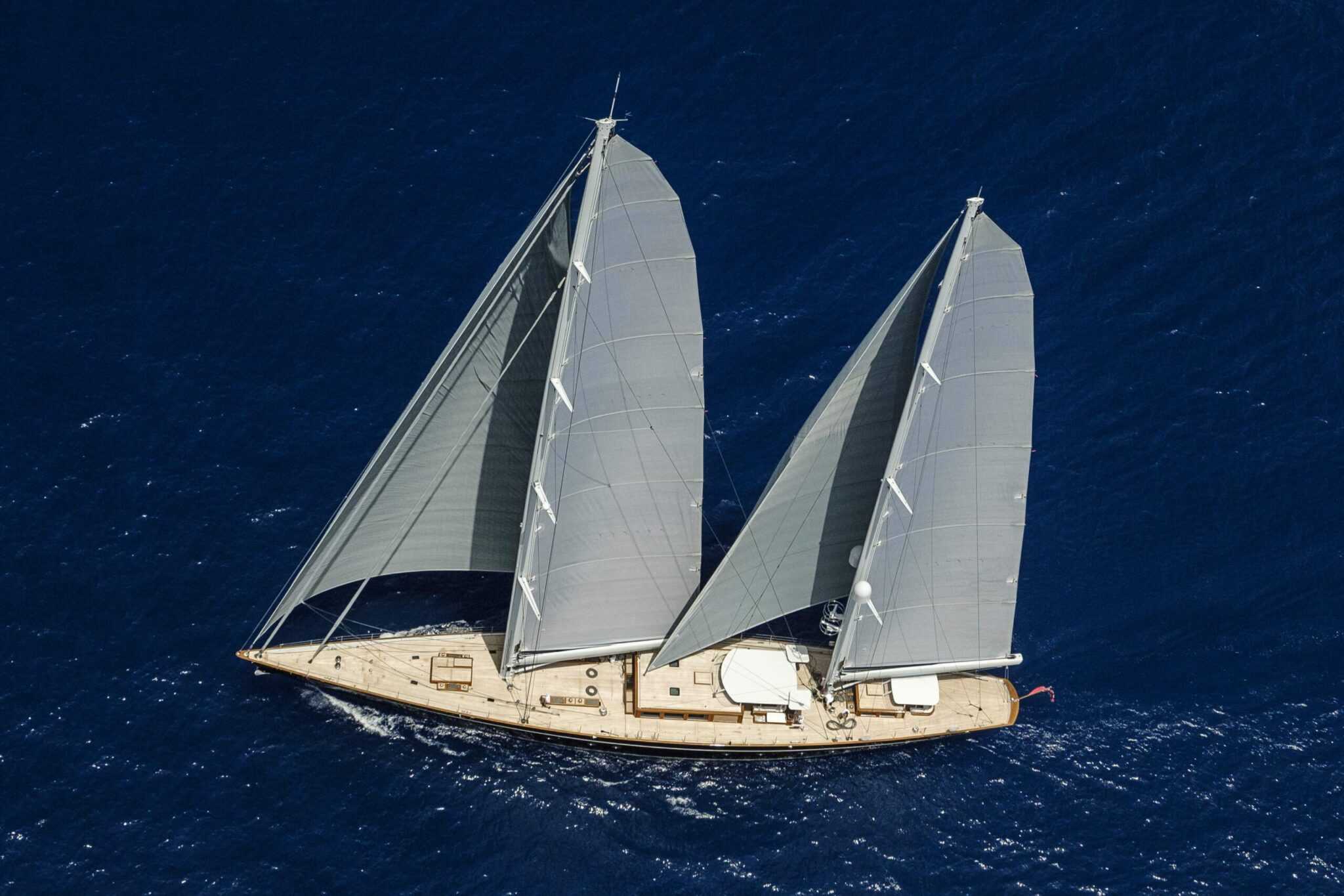 Noha a belső tér lenyűgöző, a hajó fedélzete is tartogat igazi meglepetéseket. Nézzük rögtön a főárbócot. Az 52,5 méter magas karbonszerkezet – csakúgy, mint a teljes rigg – a Rondal cég alkotása. A ketch kialakítás egyébként a könnyebb használhatóságot szolgálja, a vitorlaszett jobban variálható és a hajó is kezesebb. Ugyanakkor óriási felületekről beszélünk, így minden elektromos. Van egy vezérlőpanel a kormányállásnál, és egy mobil munkaállomás, amely a vitorlák finom állításánál nagy segítség. Így a legénység a fedélzeten körbesétálva is tudja állítani a vásznakat.