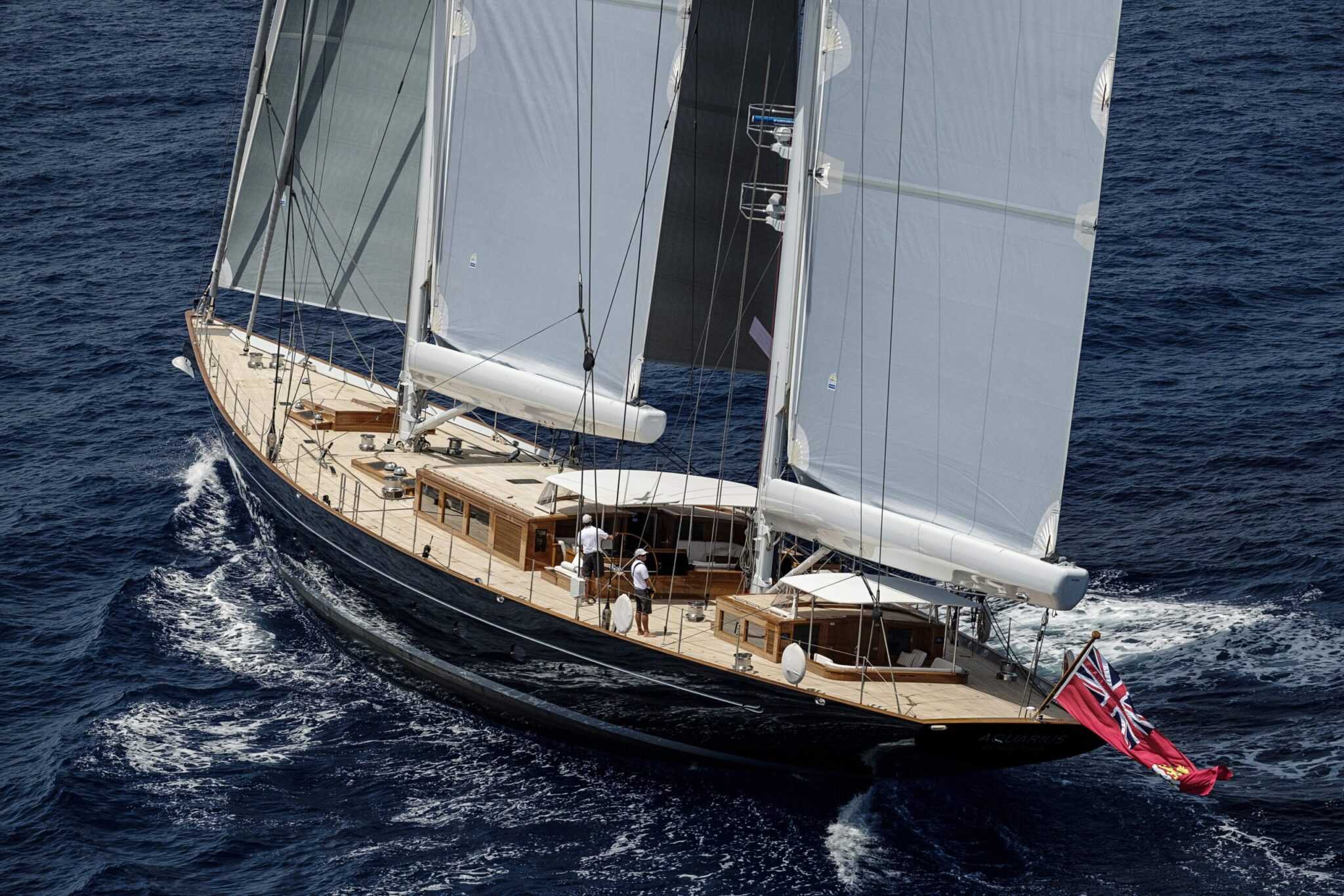 Ezek pedig tényleg nagyok. A baumba tekerhető nagyvitorlák 520 és 440 négyzetméteresek. A normál orrvitorla 430 négyzetméter. Ehhez jöhet még egy 770 négyzetméteres Code 0 vagy egy 1580 négyzetméteres genakker. Összeségében ez azt jelenti, hogy a maximum cirkálóvitorlázat 1390 négyzetméter, míg a bőszeles akár 3000 négyzetméter is lehet! Dolgoznak is rendesen az elektromos csörlők, percenként 100 méter kötelet tudnak feltekerni. Az Aquarius testsebessége 16 csomó, ami valóban komoly teljesítmény egy ilyen luxusjachtnál.