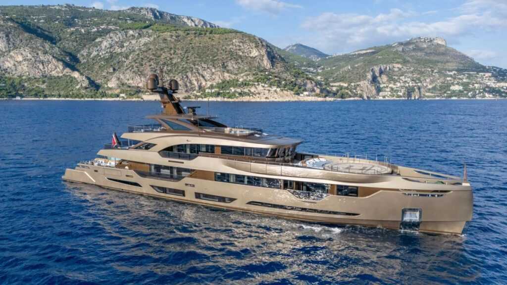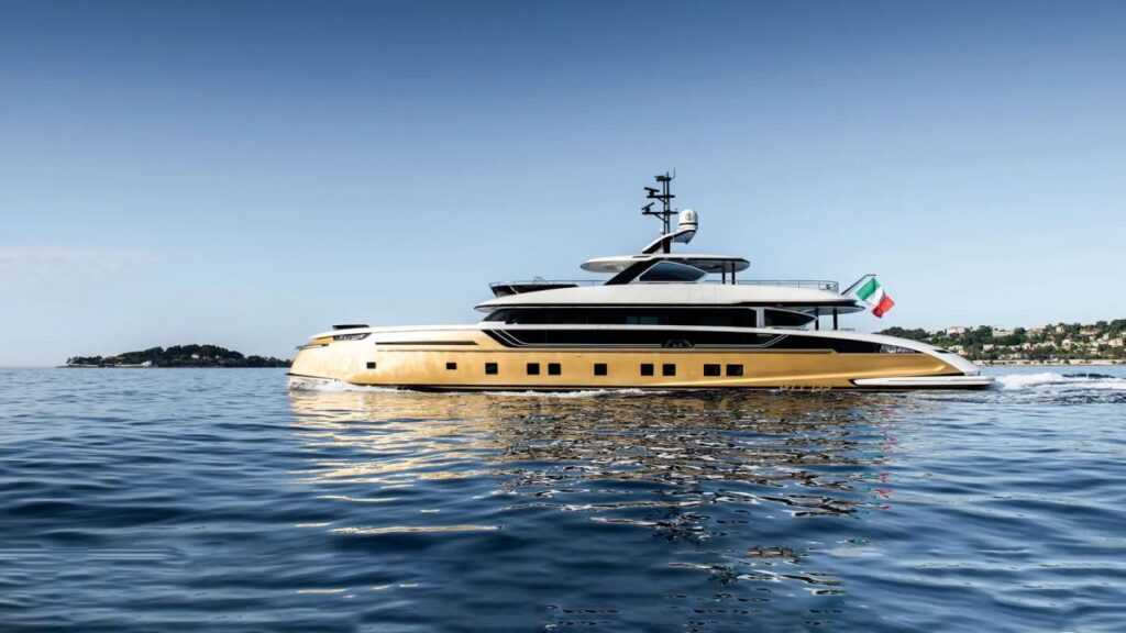 Aranyának árnyalata a finomabbak közé tartozik – olasz gyártója „pezsgőszínűnek” hívja –, és a tavalyi Monaco Yacht Show-n debütált. Csillogó külseje nem az egyetlen értéke, a tulajdonosi lakrészt a ragyogó sárga kvarc pala uralja, itt masszázsszoba, iroda, edzőterem, gardrób, valamint jakuzzival és törökfürdővel felszerelt fürdőszoba is található. A fedélzet más részein még két jakuzzit találunk – az egyiket a felső fedélzeten, a másikat a napozóteraszon –, a fő fedélzet úszómedencéjében pedig buborékmentes víz várja azokat, akik olyanra vágynak.