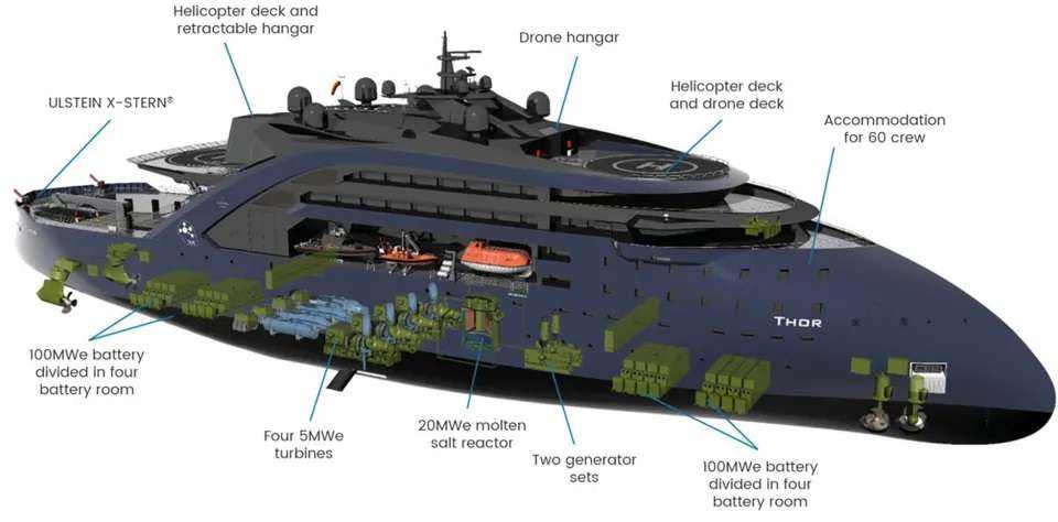 Ez egy koncepciójacht, amelyet dízelmotorok helyett kis moduláris reaktor (SMR) hajt – csendes utazást és nulla kibocsátást kínálva a tengeren.