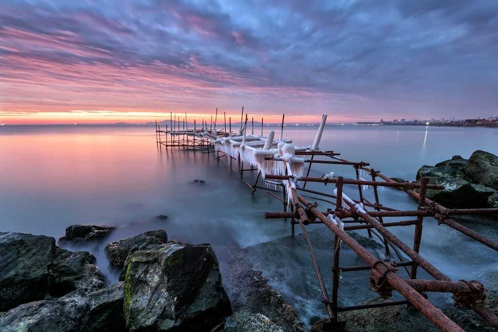 Burgasznál az elmúlt évszázadban háromszor fagyott be a tenger, a jelenséget most a kikötőváros tengerparti Szerafovo negyedéből lehetett jól látni.