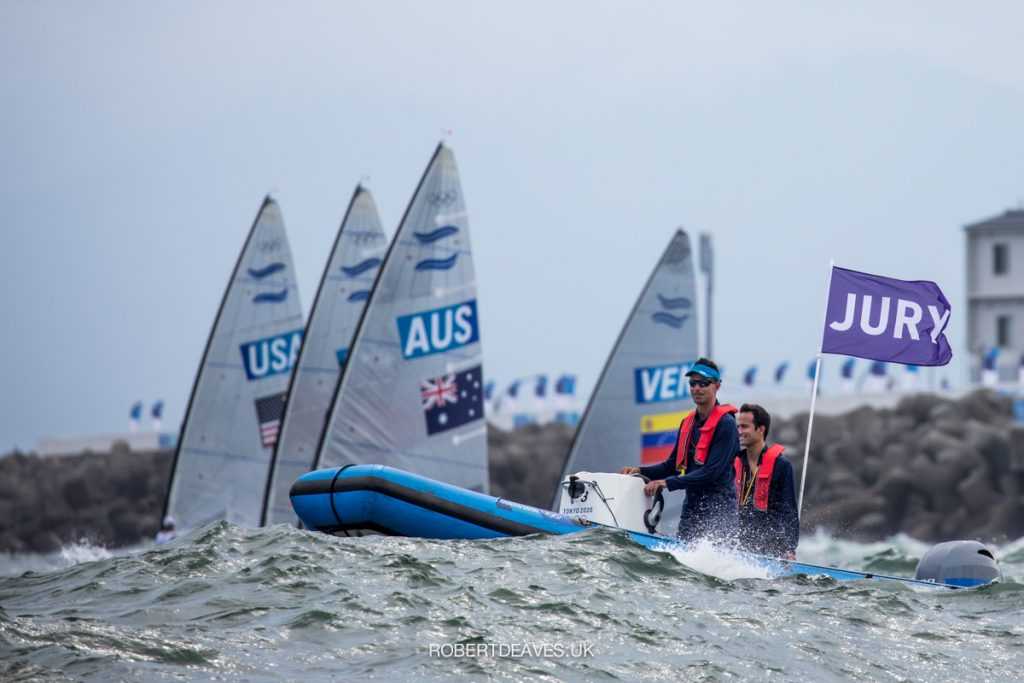 B. B.: A 42. szabály (meghajtás) bíráskodásának voltam a helyettes vezetője. A meghajtással kapcsolatos szabályokat a versenybíróság a vízen azonnal büntetheti, a versenyzők el is várják, hogy a külső szemek futamról futamra egységesen bíráskodjanak. Vezető kollégámmal a feladatunk komplex volt: a különböző versenyszámok között úgy kellett egyeztetnünk az eljárásokat, hogy közben figyelembe vehessük azok specialitásait, mint például a „gyors” és „lassú” versenyszámok pozicionálási különbségeit. A másik felosztás versenyszámalapú volt. A csapatba felkért összes versenybírónak legalább egy olimpiai osztállyal kapcsolatban kiemelt tapasztalatai voltak, így tettek minden versenyszámhoz egy vezető versenybírót és az előbbiek szerinti helyettesét. A tokiói játékokat megelőző hét évben az összes Finn Gold Cupon (az osztály világbajnoksága) részt vettem, ez biztosan hozzájárult ahhoz, hogy engem kértek fel a versenyszám vezető versenybírójának… rendkívül szerencsésnek érzem magunkat, beleértve Fluck Bencét is, hogy jelen lehettünk az eddigi legfényesebb olimpiai érmünk születésénél. Amikor a Finn osztálynak szünnapja volt, akkor rendszerint a Laser és a Laser Radial osztály futamain kaptam lehetőséget. A tárgyalások szempontjából nem volt hasonlóan merev felosztás, ott bármely versenyszám eseteinek eldöntésére készen kellett állni.