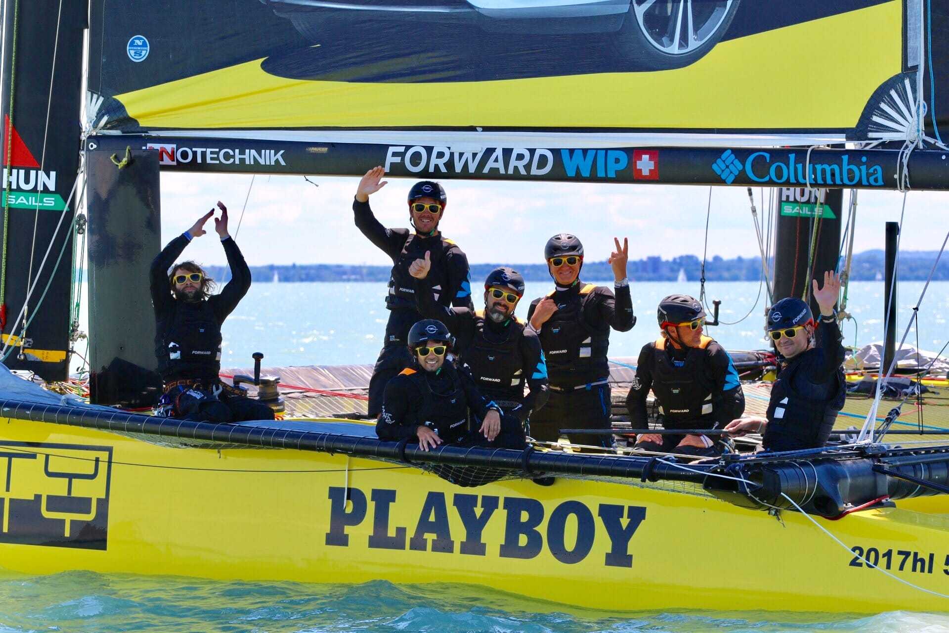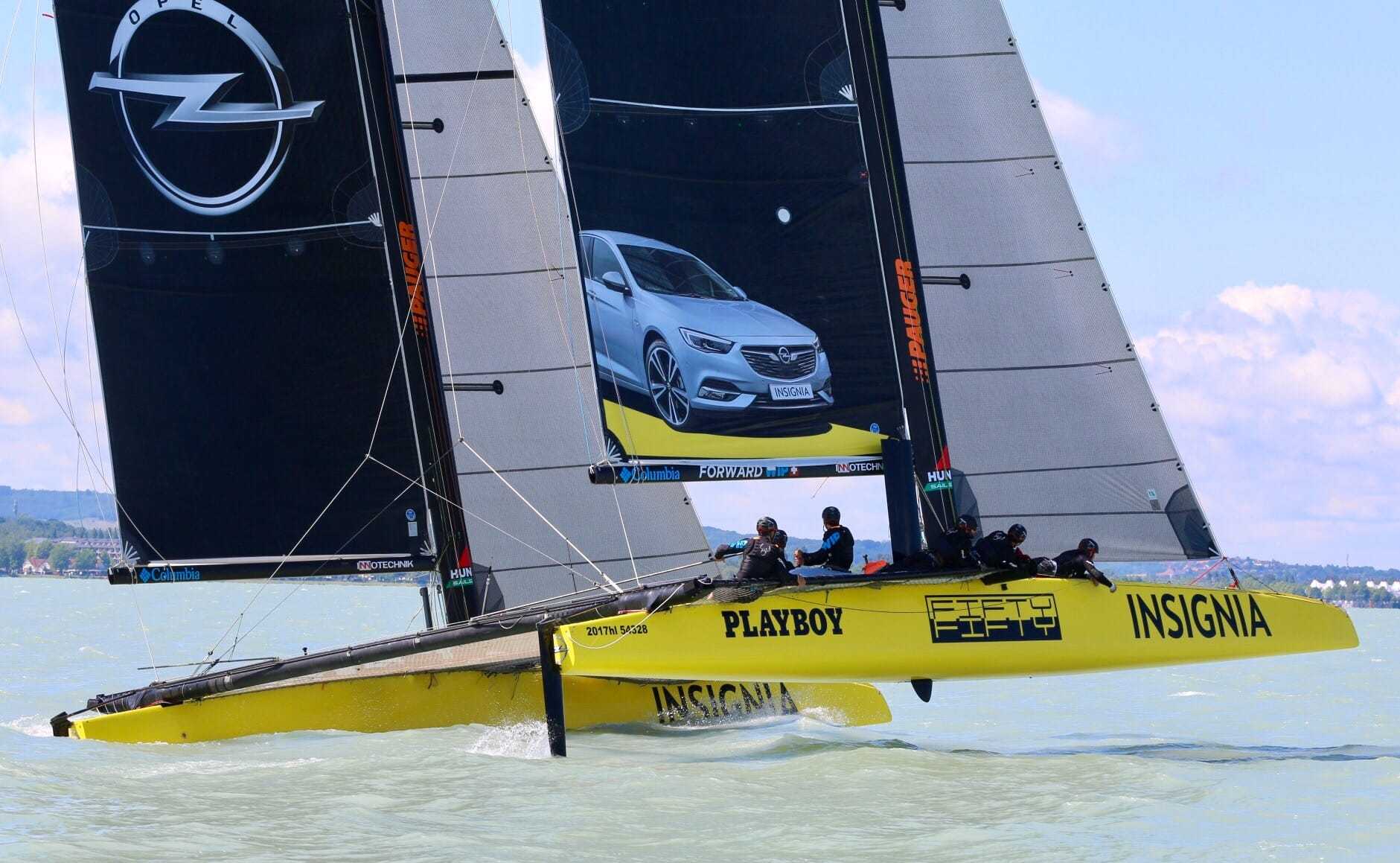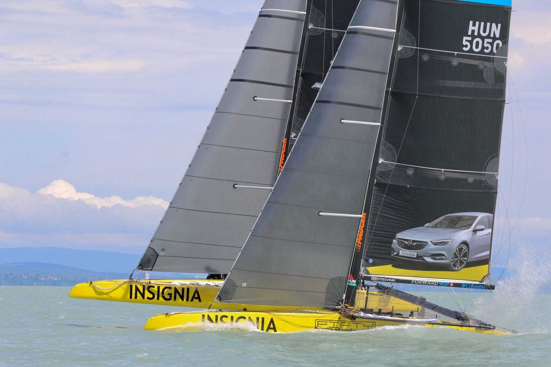 „Reffelt, csökkentett felületű vitorlákkal indultunk, a rajtnál inkább óvatos kezdéssel léptünk ki, illetve bíztunk benne, hogy a szél visszaerősödik. A kurtított vitorlák nagyobb stabilitást adnak a hajónak az erősödésekben, és meglepően láttuk, hogy hasonló sebességet tudunk így menni, mint a többi katamarán teljes vitorlázattal. A kenesei bójánál már felhúztuk teljesen az egyik nagyvitorlát, majd Siófoknál minden vitorlánkat a maximumra feszítettük. Más választásunk nem volt, hiszen az egyik erős szeles orrvitorla felhúzója kiakadt, így azt már nem tudtuk tovább használni. A 18-20 csomós erősödésekkel frissülő szélben is tudtuk kezelni a hajót, nagyon jól dolgoznak az új vásznaink. Elégedett vagyok és bízok a nekünk kedvező széljárásban a 49. Kékszalag Erste World Nagydíjon is” – mondta Józsa Márton.