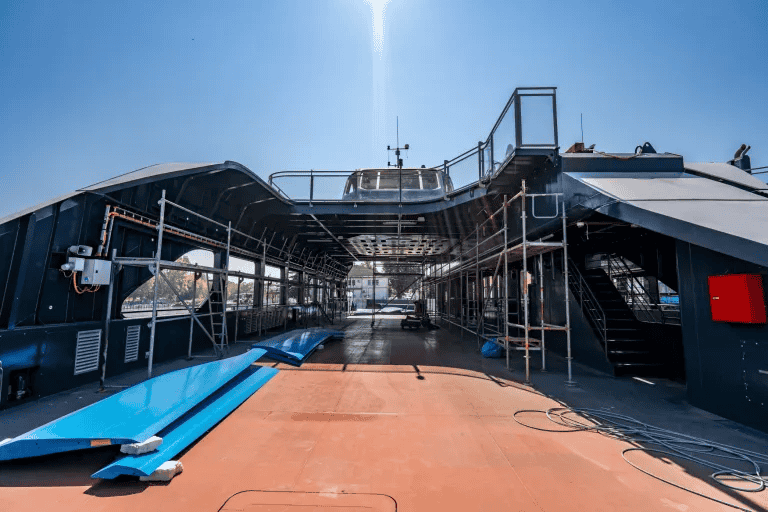 Ezt követte a gépészeti, villamos, hidraulikai rendszerek visszaépítése. A kompokon 11, a katamaránokon pedig 14 km hosszú elektromos vezeték húzódik, emellett a gépészeti csövek is kitesznek hajónként 1-1 kilométert.