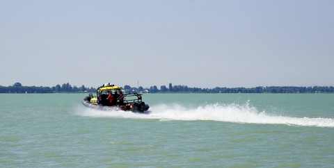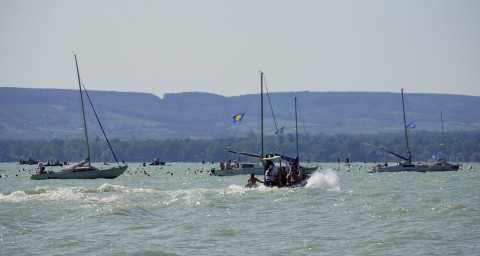 A vízimentők öt mentőhajóval és két sürgősségi mentőhajóval érkeztek a Balaton-átúszásra és -áthúzásra.