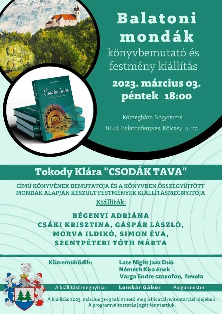Balatoni mondák címmel könyvbemutatót és festménykiállítást rendeznek 2023. március 3-án 18 órától Balatonfenyvesen, a polgármesteri hivatal nagytermében.