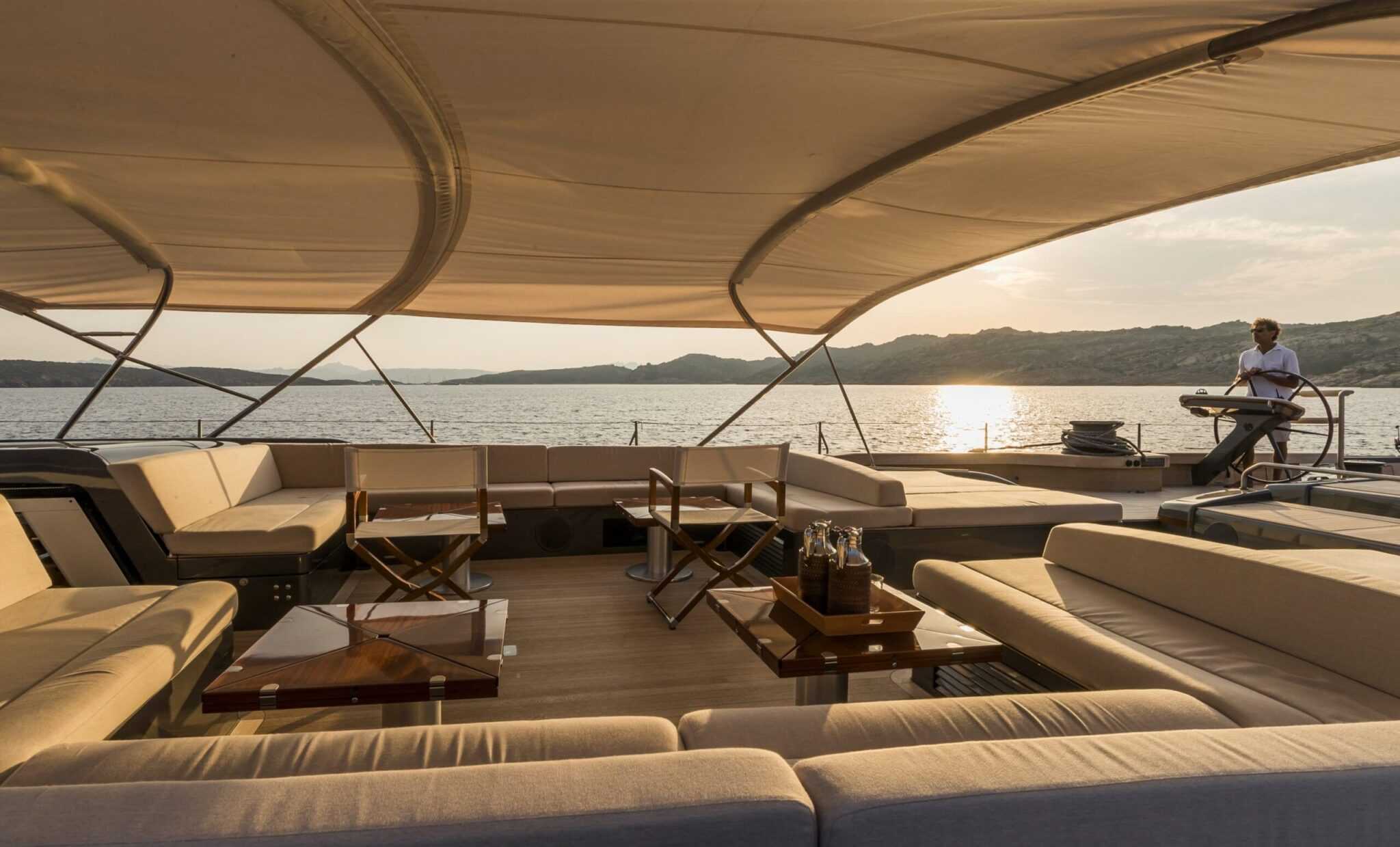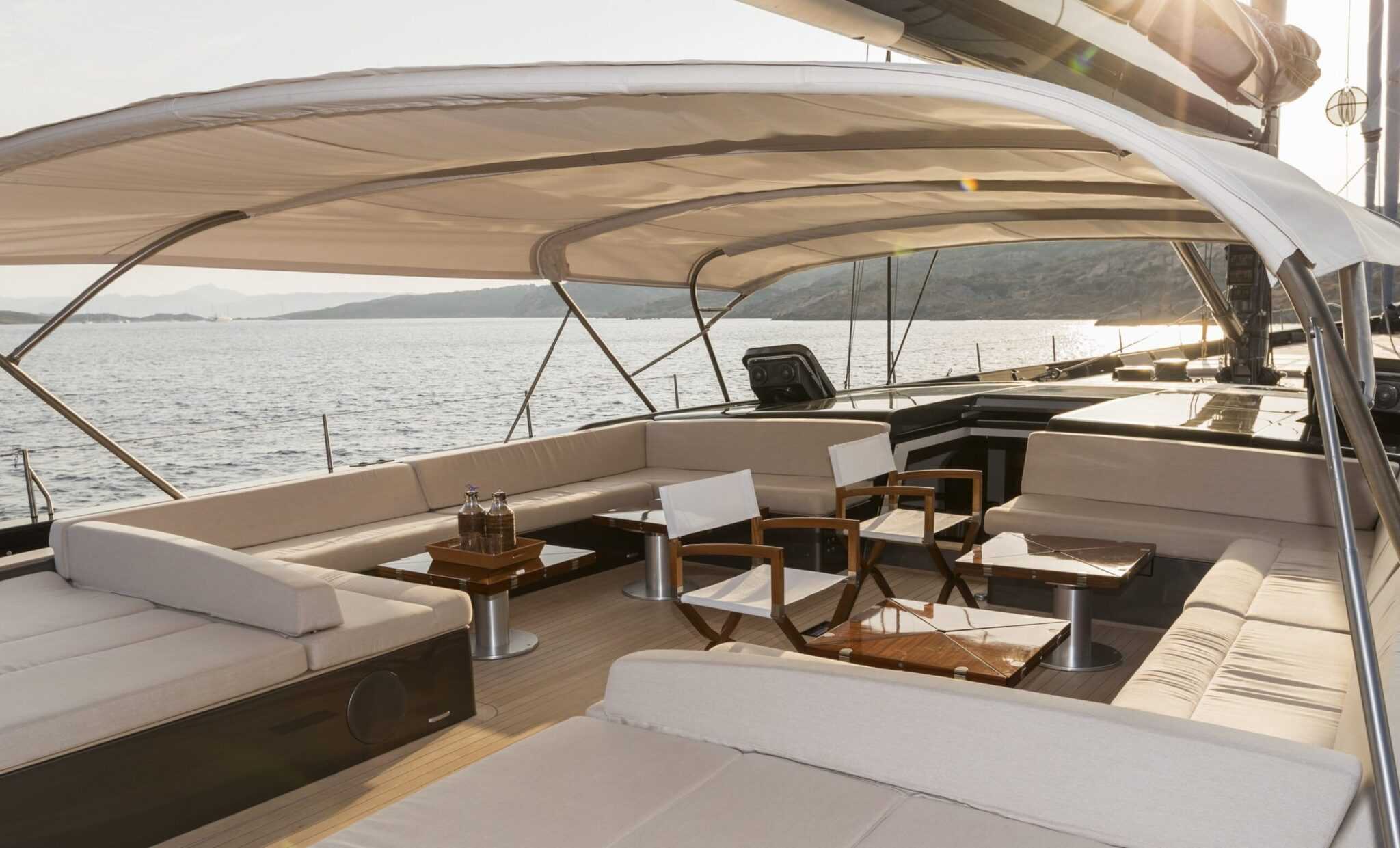MySong130_16cb_00937 Mivel a felhasználás célja kettős, a hajótest belsejében sem az volt a cél, hogy minél többen elférjenek, ezért a My Song jövőbeli tulajdonosa hat barátját láthatja rajta vendégül. Igaz, a lehető legnagyobb kényelemben, hiszen a hat teljes értékű kabinon kívül szalon és két fürdőszoba is elfért a 40 méteres hajón.