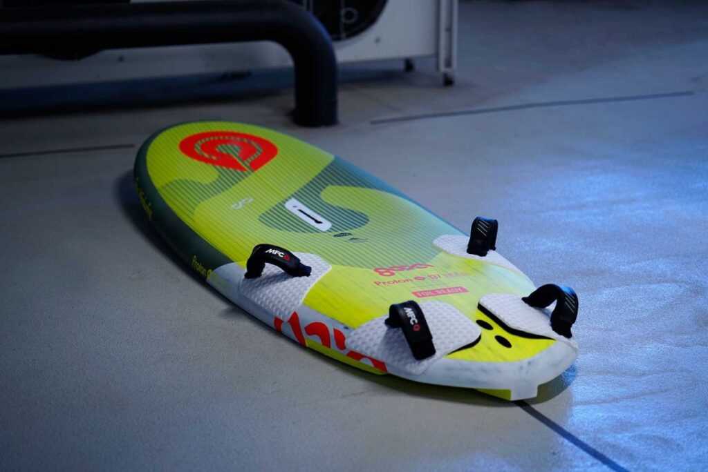 Nézzük a deszkákat! Ha kereskedőként egy tanuló fázisban lévő vevőt megkérdezek, hogy mit szeretne elérni, biztosan azt mondja, hogy nagyon gyors szeretne lenni. Ezt egyértelműen egy 100 liter körüli szlalomdeszkával lehet elérni. Igen ám, de ha nincsenek meg az alapok, akkor a deszka hiába tudná az erős szeles, ijesztően gyors tempót. Inkább válassz olyan deszkát, ami jobban bírja az ütéseket, sérüléseket, és nem baj, ha nehezebb 1-2 kilóval. A szuperkönnyű karbondeszkák erre képtelenek, és még a kezelhetőséggel, sőt, a deszka szélére helyezett lábtartó pozíciókkal is meggyűlik a bajod. Ha kezdőként freeride deszkát keresel, inkább az egyszerűbb felépítésűt válaszd, és ha túlléptél a freeride-on, ne a szlalomot, hanem egy freerace deszkát próbálj ki. Lehet, hogy árnyalatnyival lassabb leszel, de a fordulóknál behozod a sebességnél elvesztett métereket. Várhatóan jóval kevesebbet fogsz esni a manőverek közben.