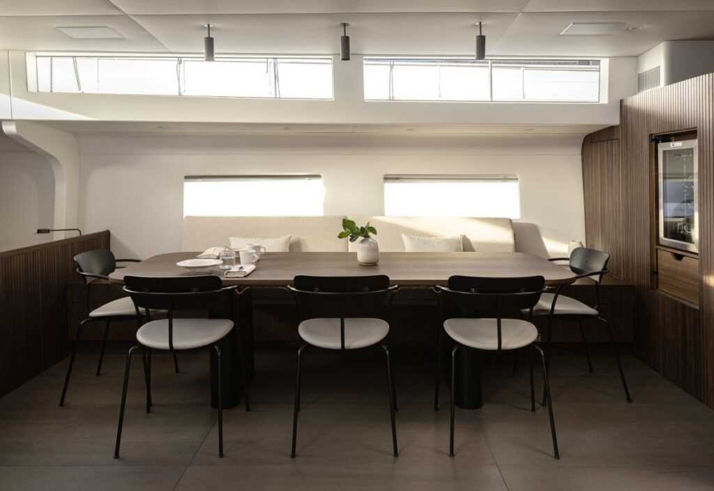 A jacht felszerelése ezenfelül egy hidrogenerátor rendszerből, a bimini tetején található 14 négyzetméternyi napelemből, valamint egy nagy teljesítményű akkumulátorcsomagból áll. Mindez azt jelenti, hogy a vitorlás képes megújuló energiát termelni akár horgonyzás, akár menet közben. A fedélzeti rendszerek kialakításával egyenértékű figyelmet kapott a hajó zajszigetelése is. A cég a tervezés során több zajspecialistával is konzultált, így a végeredmény egy kifejezetten csendes jacht lett.
