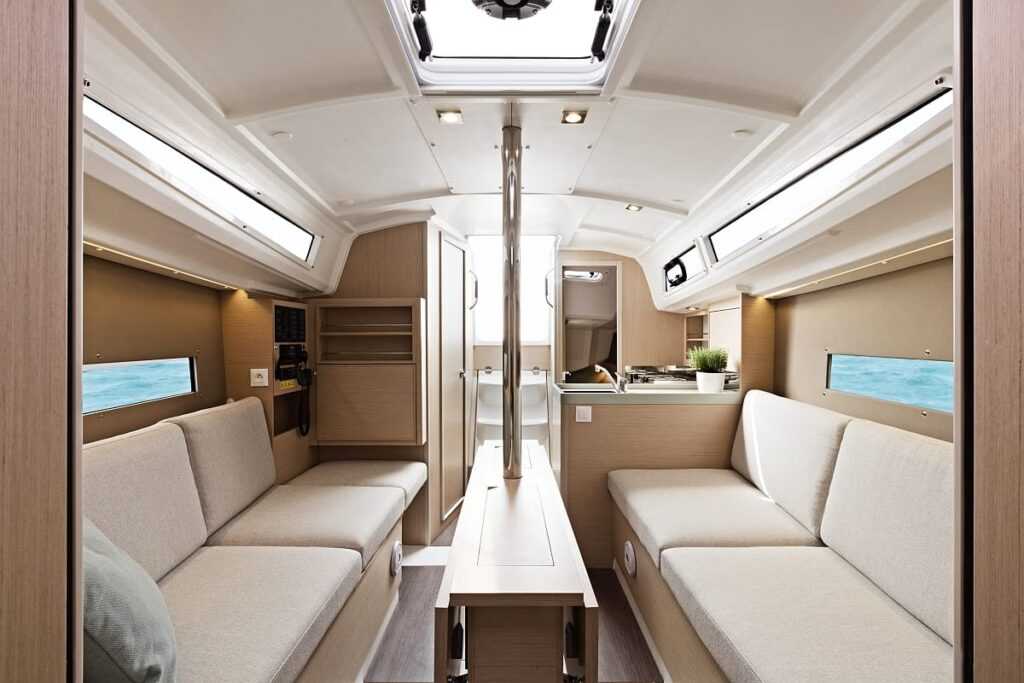 Dupla kormányos verziójában nagy és kényelmes fedélzetet kínál, a széles, összecsukható asztal két oldalán kényelmesen elfér akár hat vendég. Érezhetően nagyobb térérzetet nyújt hasonló méretű társainál, köszönhetően annak a néhány extra centiméternek, amelyek a stratégiai helyekre kerültek. Például a padló a hajó szerkezetének részévé vált, amivel állómagasság 2,1 méterre nőtt. Mindkét normál méretű dupla kabin teljes értékű ágyat kapott, így különösen tágasak és kényelmesek. A szalonban lévő két pad szintén ággyá alakítható.