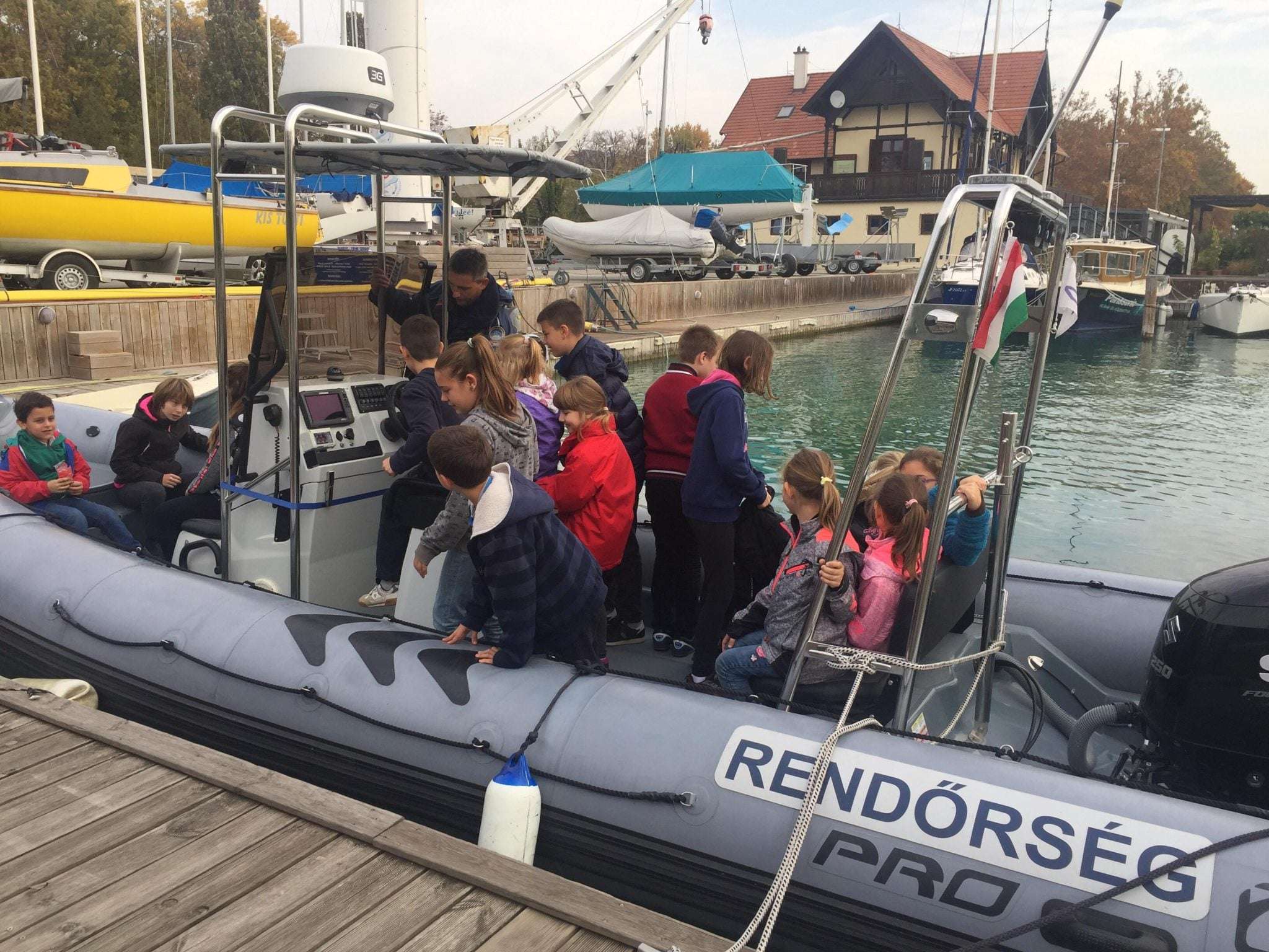Az előadásokat követően a gyerekeknek kipróbálhatták a rendőrök járőrhajóját, közelebbről is megnézhették a felszerelésüket.