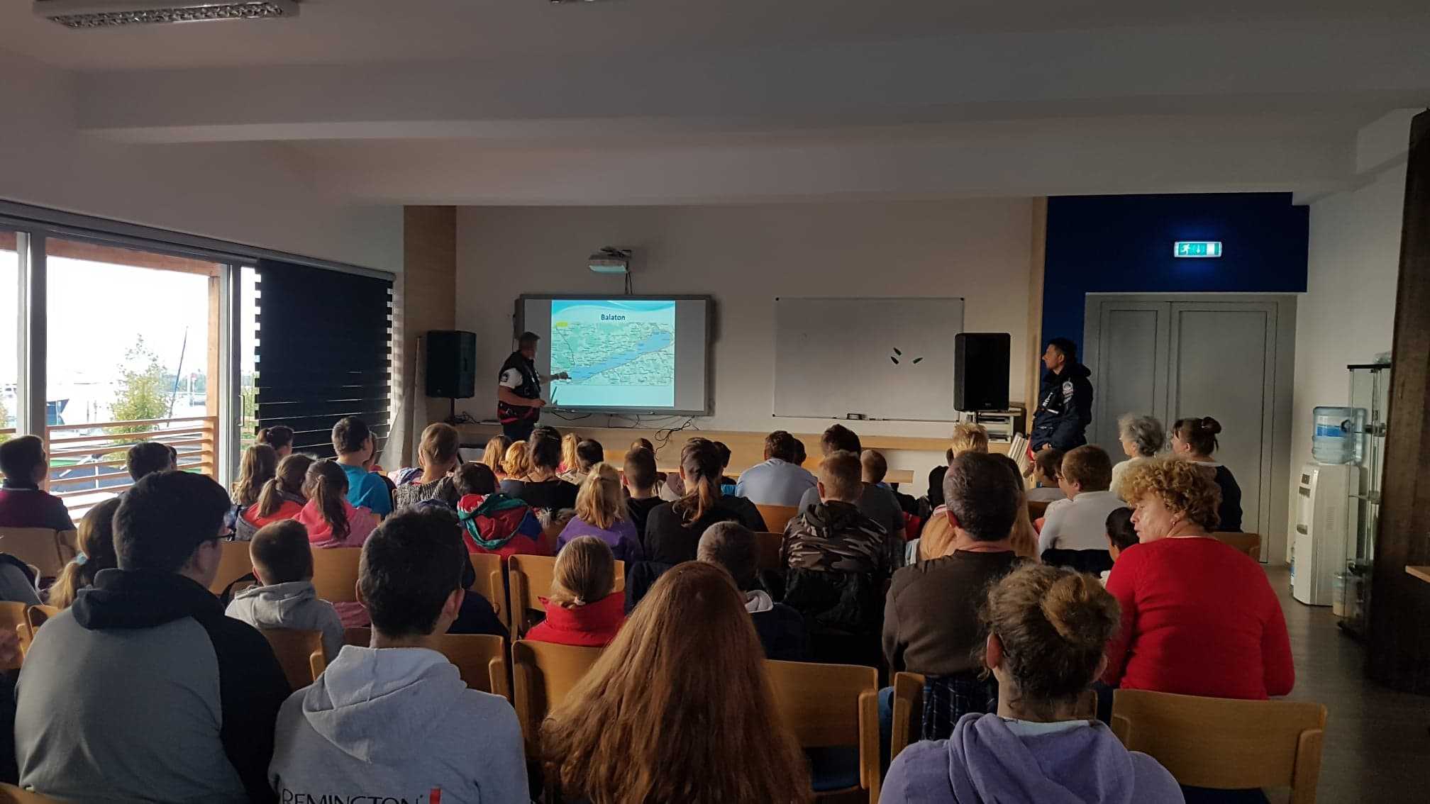 Elsőként Dominek Jácint, a Balatoni Vízirendészeti Rendőrkapitányság Balatonfüredi Rendőrőrs rendőr százados őrsparancsnoka, majd őt követően Illés Zoltán vízi mentő beszélt a vízbiztonságról, a vízi rendőrség és a vízi mentők munkájáról.