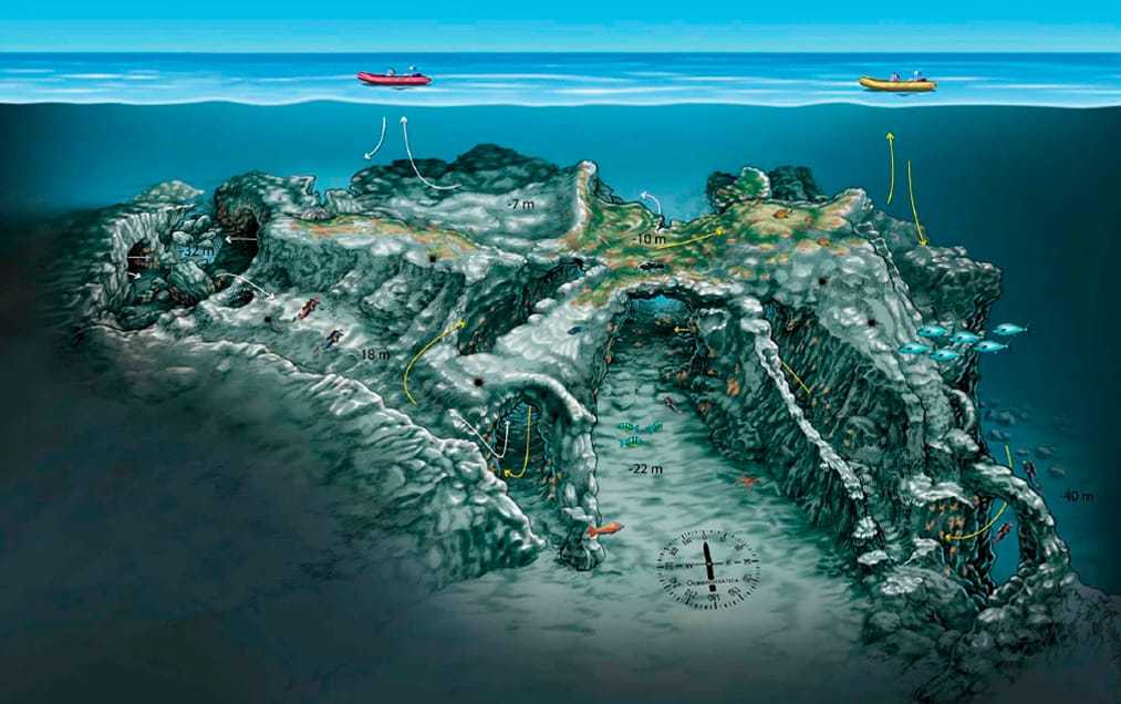 la-catedral Mogan West Aki még a búvárkodás elején tart, annak nagyszerű gyakorlóterep Mogan West. Ez Mogan kikötőjének végén elterülő sziklától indul. A sziklák és a homok találkozásánál nagyon gazdag élővilágra bukkanhatunk. Angyalcápák, tengericsillagok, tintahalak, bohóchalak, heringek raja úszkál körülöttünk.