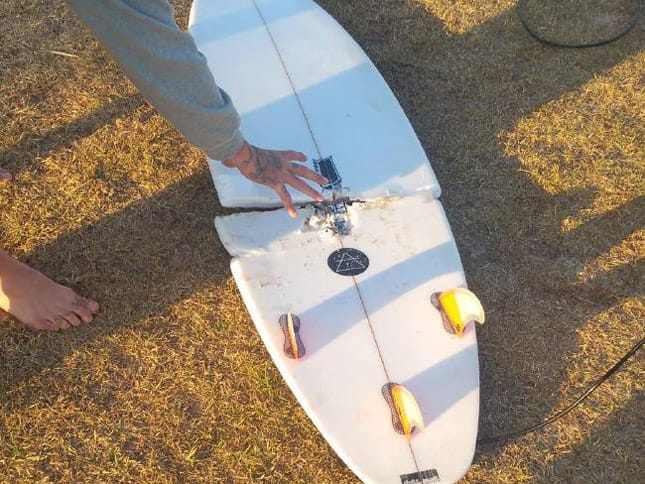 A szörfdeszka felfogta a félelmetes ragadozó támadásának erejét, így a férfi enyhébb sérülésekkel megúszta.