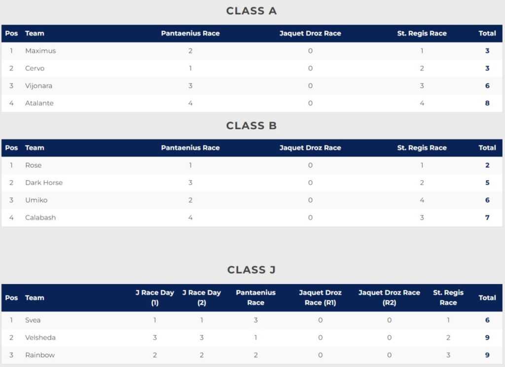 Az A osztályban annyira szoros verseny zajlott, hogy az 59 méteres óriás ketch Maximus mindössze egyetlen másodperccel nyerte meg az utolsó futamot a 39 méteres Cervo előtt. Mivel mindkettejüknek egy-egy első és második helye volt, az időkülönbség döntött közöttük – a Maximus javára. Lars Loftus kapitány boldogan nyilatkozott: „Az volt a tervünk, hogy folyamatosan tiszta szélben vitorlázunk és mindig a maximumot hozzuk ki a hajóból. Sikerült véghezvinni, ami kifizetődött, nem volt olyan szakasz, amikor csak egy másodperce is kihagytunk volna. Az, hogy ilyen sikereket érünk el, az ’ezerfős’ stábnak köszönhető” – utalt 15 versenyzőjére és 35 fős kiegészítő személyzetére.