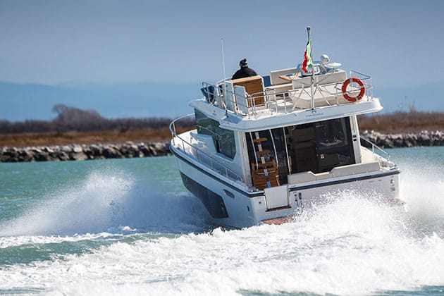 Ha természetes közegéből – vagyis a vízből – kiemelve szemléli valaki a Cranchi 43 lábas újdonságát, kissé szögletesnek is láthatná. De amint vízbe merül és megindul, azonnal bizonyítja, hogy nem érdemtelen a „powerboat” jelzőre, hiszen súly-teljesítmény aránya kiváló a kategóriában.