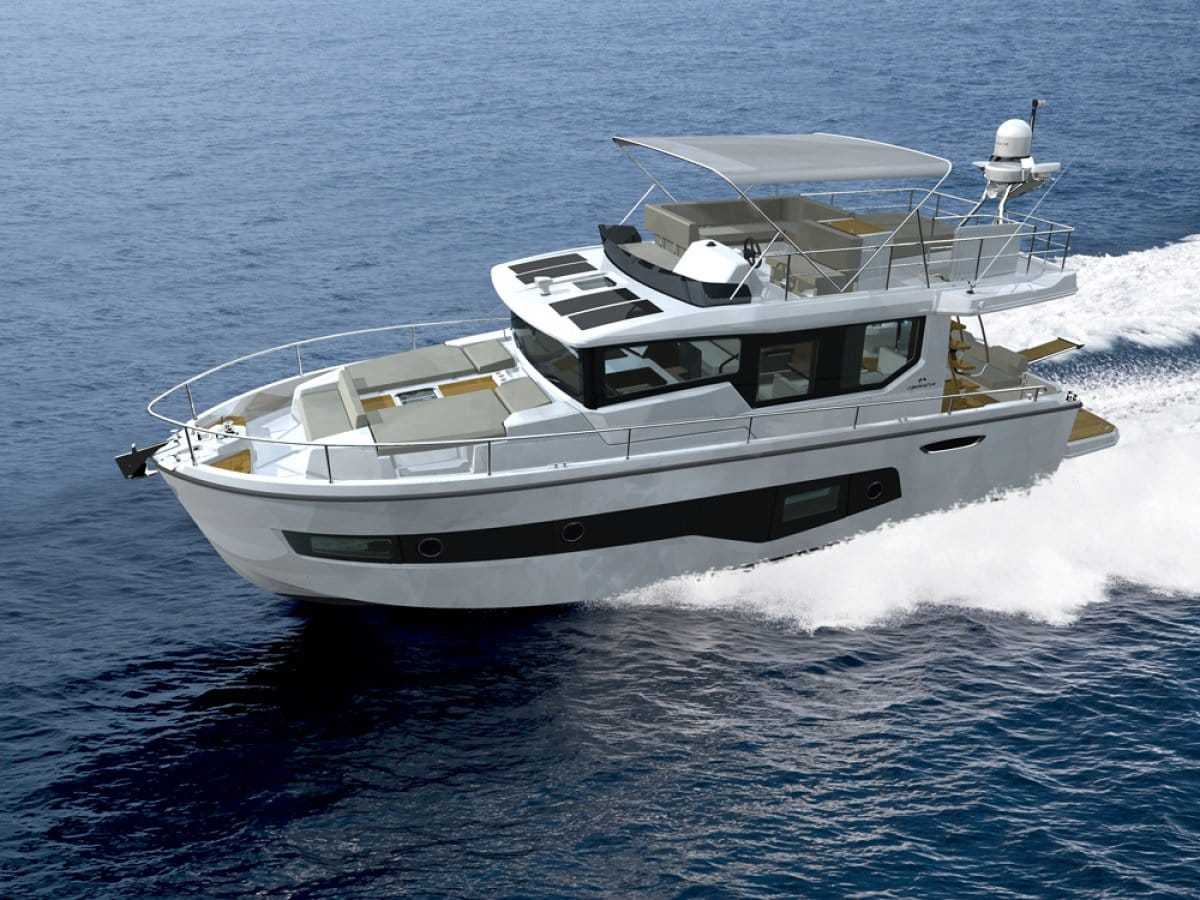 Háromféle duplamotoros kivitelben kínálják, a legkisebb kétszer 260, a közepes 300, míg a legerősebb 330 lőerőt kínál. Teszi mindezt Volvo Penta IPS motorok formájában, vagyis a megbízhatóság borítékolható. Mindehhez ráadásul mindössze 13,5 tonnát nyom üresen.