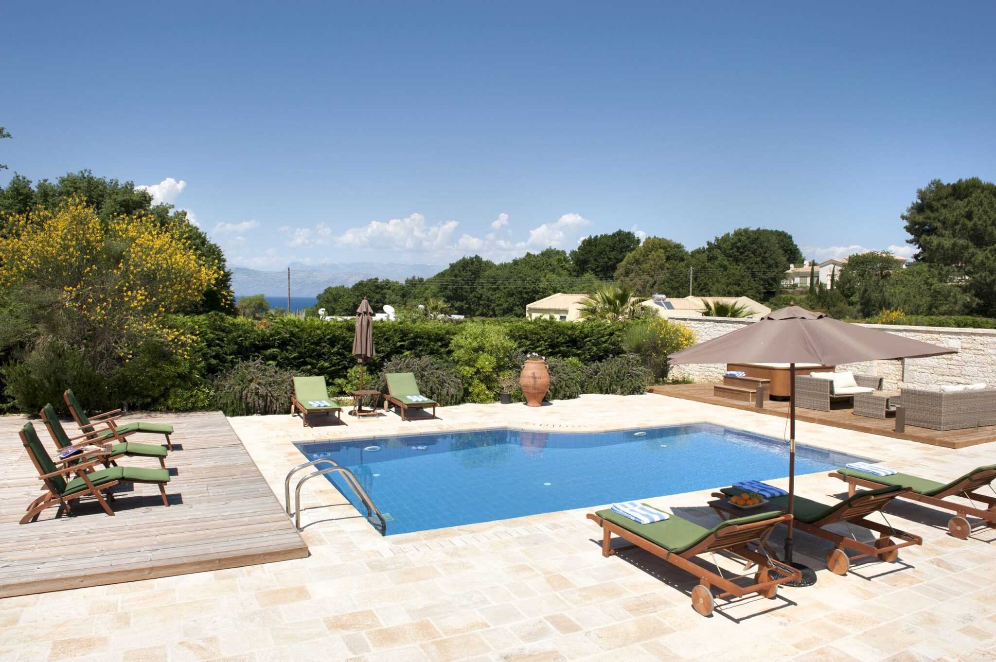 Innen mindössze egy rövid sétára található a Coyevinas strand, de a villának saját medencéje és pezsgőfürdője is van, emellett van itt szabadtéri dolgozósarok, a teraszról pedig lenyűgöző kilátást nyílik a környékre, és gyalog könnyen elérhető a közeli Kassiopi falu is.