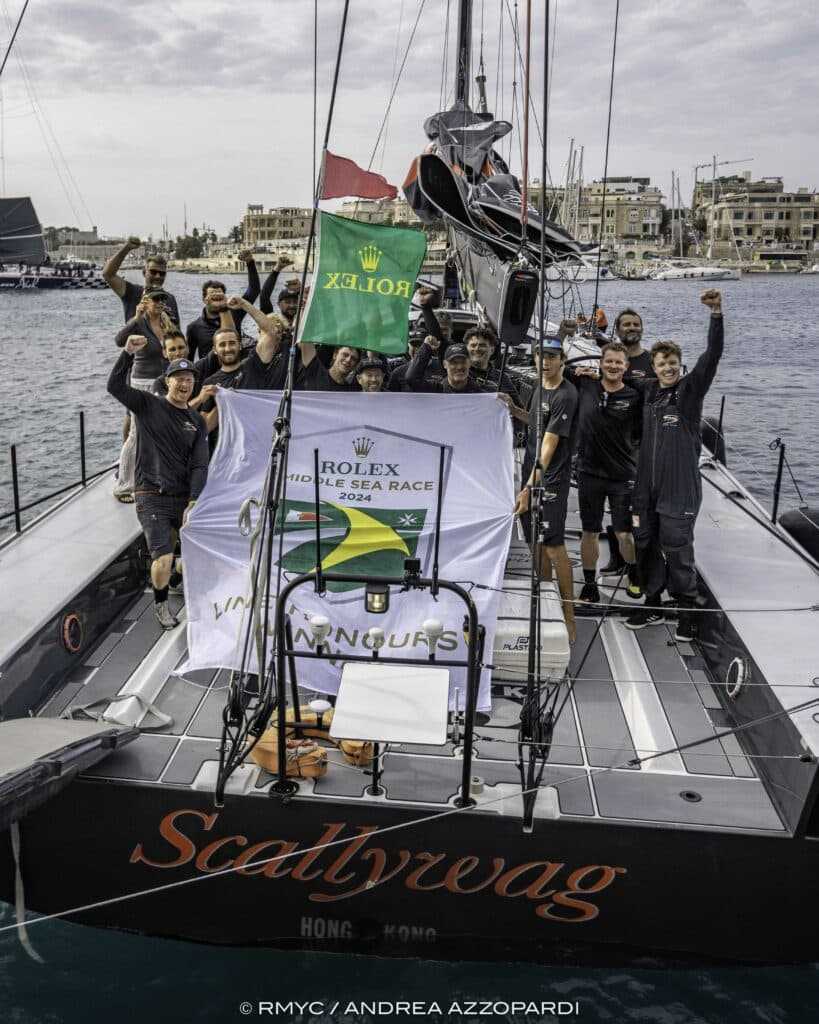 A Huang-Seng Lee vezette Scallywag 100 (HKG) október 22-én, kedden 09:43:29-kor abszolút elsőként ért célba a 2024-es Rolex Middle Sea Race versenyen.