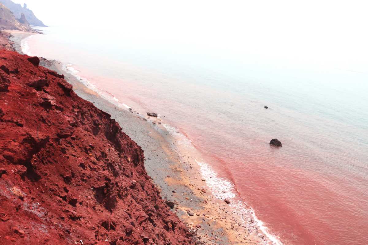 Hormuz szigetének egyik legismertebb pontja a Vörös-part, ahol a homok mély bíbor árnyalatú. A színért a magas vastartalmú talaj felel, amely eső után látványos, vöröses patakokban folyik le a dombokról a tenger felé. A jelenség annyira erőteljes, hogy a partvonal időnként teljesen átszíneződik. A helyiek a gelack néven ismert vörös földet az ipari célok mellett a konyhában is felhasználják, például mártások színezésére.