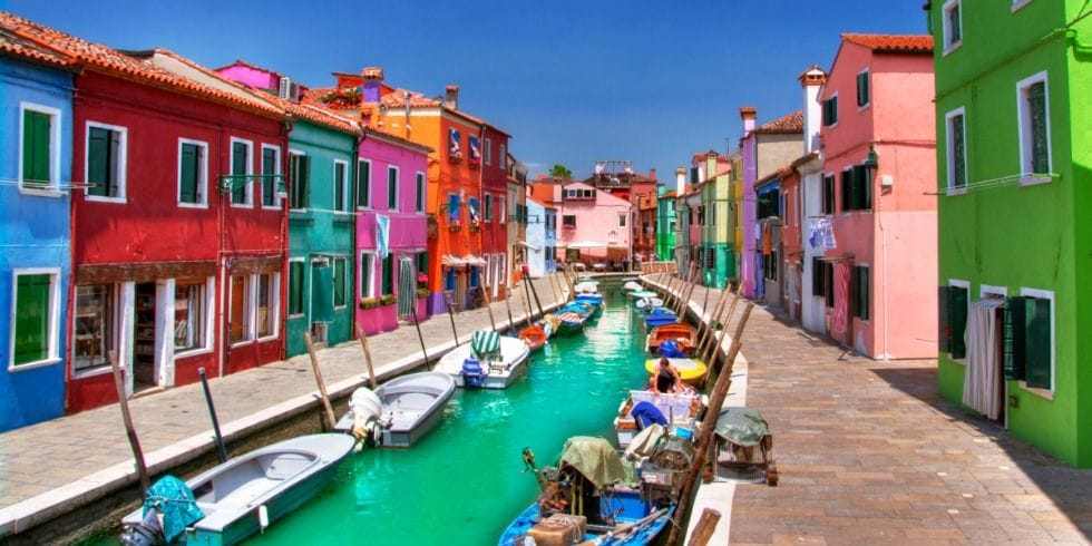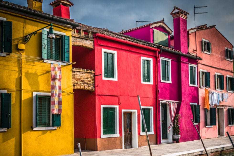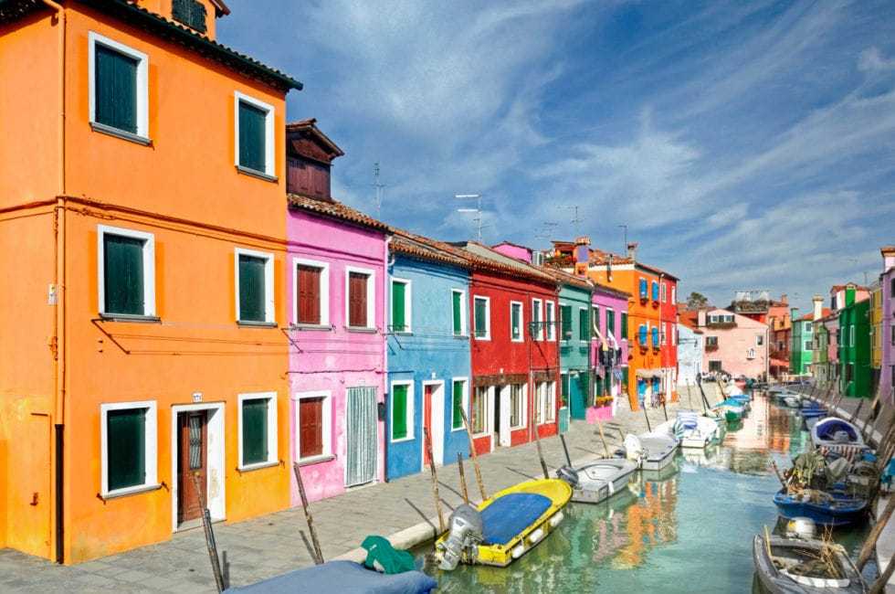 Buranóra a szomszédos Mazzorbo szigetről kis fahídon lehet eljutni. A legenda szerint a halászok azért festették rikító színűre a házuk falát, hogy messziről is haza találjanak, valójában inkább a tulajdonhatárokat testesítette meg. Az eredmény lenyűgöző és egyedülálló, állítólag a középkor óta a mai napig önkormányzati hatáskörben dől el, hogy melyik épület milyen színű lehet. Aki festeni szeretné a házát, annak levélben kell az Önkormányzathoz fordulnia, mely megadja az adott házhoz használható színek rövid listáját.
