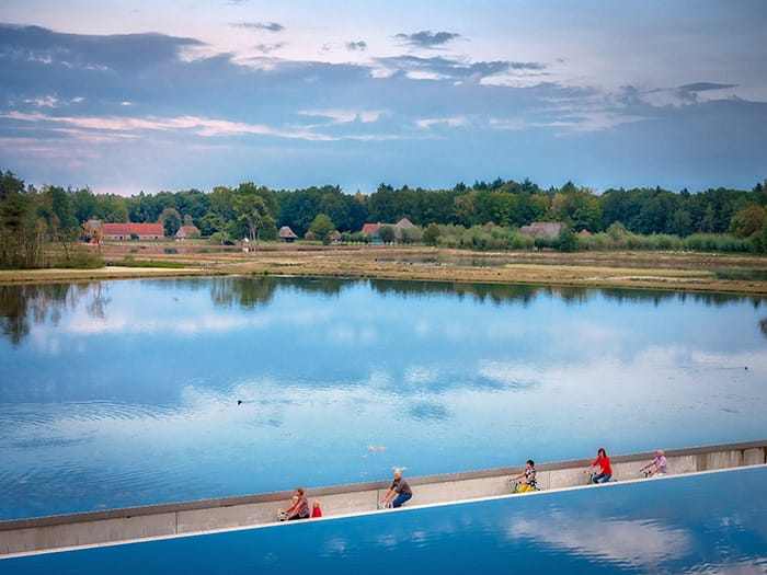 A belgiumi Limburgban, a De Wijers természetvédelmi területen a kerékpárút egyenesen keresztül vezet a tó vizén, ahelyett, hogy fölötte haladna el. A 212 méter hosszú, betonból készült utat a vízszint alá építették, így a kerékpárosoknak a tó felszíne szemmagasságban helyezkedik el.