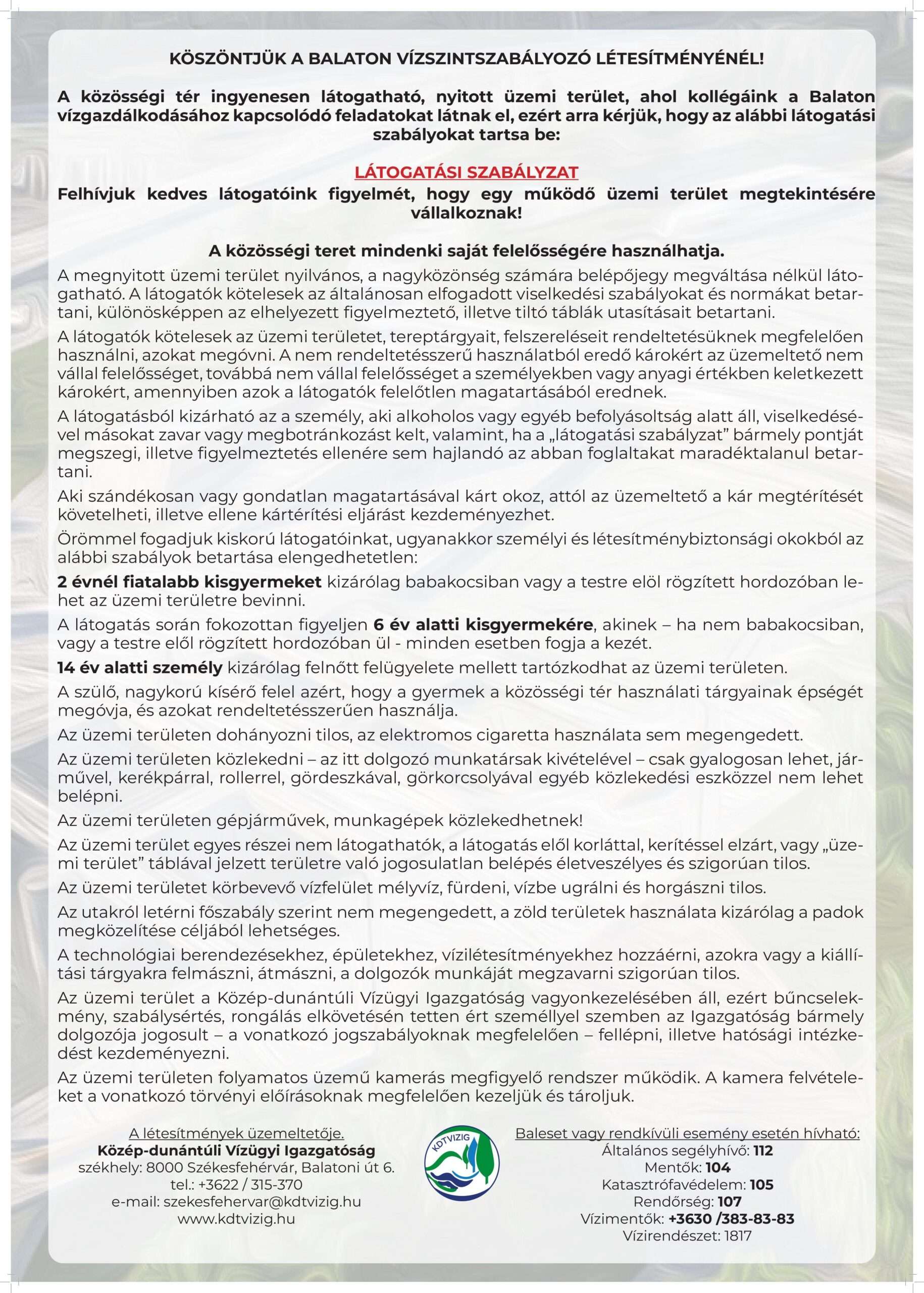 A vízügy elkészítette a házirendet és a látogatási szabályzatot, az érdeklődőket ezen kérések, előírások betartására kérik – olvasható a siofok.hu oldalon.