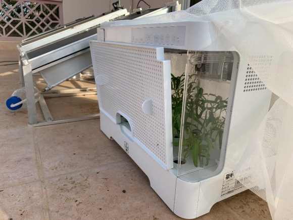 Az új konstrukció egy sor összekapcsolt fotovoltaikus panelt tartalmaz, amelyek mindegyike közvetlenül egy hidrogélréteg fölött helyezkedik el. A panel és a gél együttesen egy valamelyest megdöntött fémdoboz tetejeként szolgál. A doboz alján egy kifolyócső található.