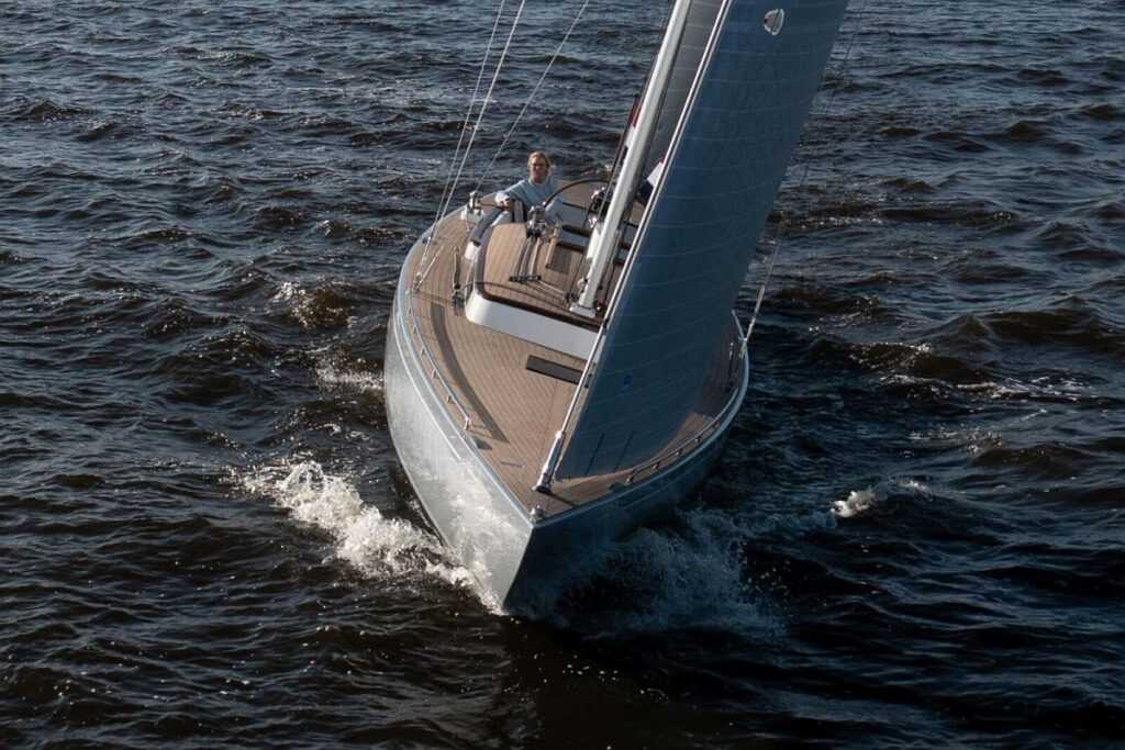 Az Eagle 46 vonalai elegánsak és időtlenek (elég csak a hosszú túlnyúlásokra pillantanunk), de a víz alatt a legmodernebb függelékek lógnak, míg a víz felett egy erős szlúp rudazata magaslik. A fedélzet elrendezése egyszerű, érezhetően egyszemélyes vitorlázáshoz optimalizált, de persze van óriási kokpit a család és a barátok számára.
