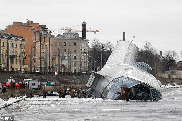 Felborult és a jeges folyóba süllyedt a szentpétervári Néva folyón található Ezüst bálna étterem.