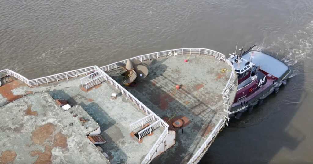 1996-ban Philadelphiába vontatták, onnan most távozott.