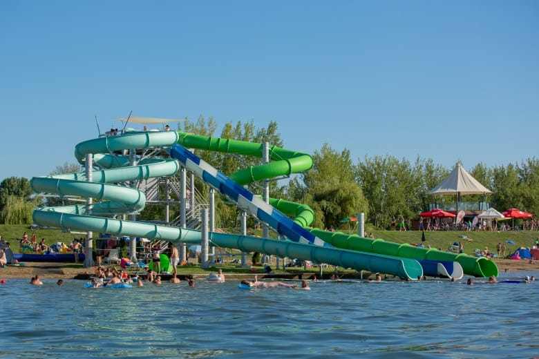 A régi csúszdát lebontották, és egy teljesen új, modern került a helyére. Ajánljuk, hogy a lecsúszás előtt, a néhány méter magasban álljon meg mindenki egy percre és gyönyörködjön a panorámában. A pici gyerekekre is gondoltak a felújítás során, hiszen számukra egy gyereköblöt hoztak létre és a nagy mellett egy kisebb csúszdát is telepítettek nekik. A vizes élmények ennyiben nem merülnek ki, hiszen a felfújható vízi játszótér a gyerekek és a felnőttek számára is mókás pillanatokat ígér, míg a vízi röplabdapálya a családi és baráti meccsek kedvelt helyszíne lehet. A strand környékét bérelhető vízibiciklikkel, kajakokkal, kenukkal és SUP-pal is fel lehet fedezni.
