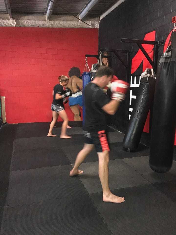 A bemelegítés után jöhettek az erőt próbáló feladatok a trénerrel, Tim Druryvel. Ez volt a második Thai Fighting-edzés a héten, amelyet továbbiak követnek majd.