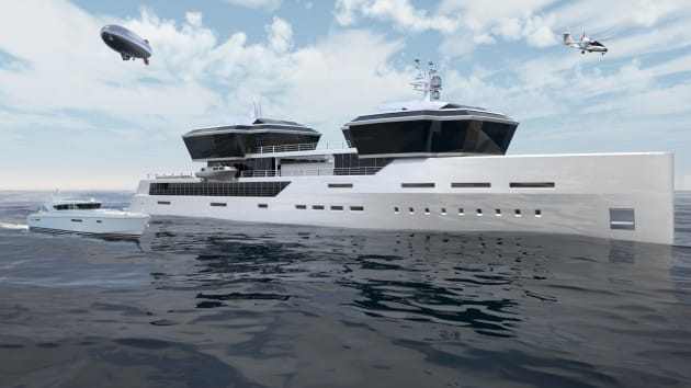Egy 100 méteres szuperjacht, amelynek fedélzetén majdnem bármilyen járművet szállíthatunk, legyen szó autóról, motorról vagy helikopterről. Bár mindez még csak koncepció, azt azért be kell látni, hogy az elképzelés igen merész.