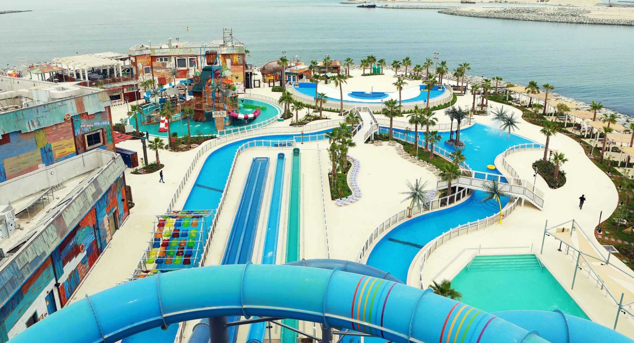 A strandon több játszótér és park található, de rengeteg a vízi játék is a parasailingtől kezdve a wakeboardig. És persze ott az a bizonyos vízi park, amely ebben az esetben nem a szárazföldön, hanem a tenger felszínén lebeg. Ez az AquaFun, a világ legnagyobb felfújható vízi vidámparkja. A finoman imbolygó létesítmény csupa kék és rózsaszín, és ha felülről nézi valaki, akkor a formája a Dubai szót adja ki. A 2700 négyzetméteres pályarendszeren 74-féle játék található, amely óránként egyszerre 350 látogatót tud fogadni. A pálya fenntartói szerint bárki nyugodtan használhatja a játékokat, akár már ötéves kortól kezdve – írta a travelo.hu.