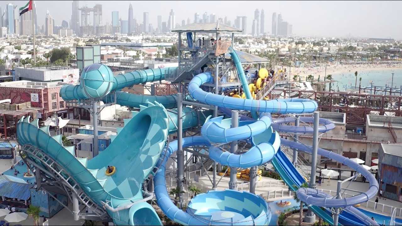 Ilyen a Jumeirah Sceirah, a park legfőbb látványossága: a 120 méter hosszú csúszdán rakétasebességgel lehet végigszáguldani, legalábbis a 80 km/óra egy ilyen helyzetben szupergyorsnak tűnik. A Tantrum Alley pedig négyszemélyes gumifánkokon indul – a matrac megindul, a félig nyitott cső pedig hol jobbra, hol balra dobál, ránt és siklik, mielőtt békésebb vizekre szállítja utasait.
