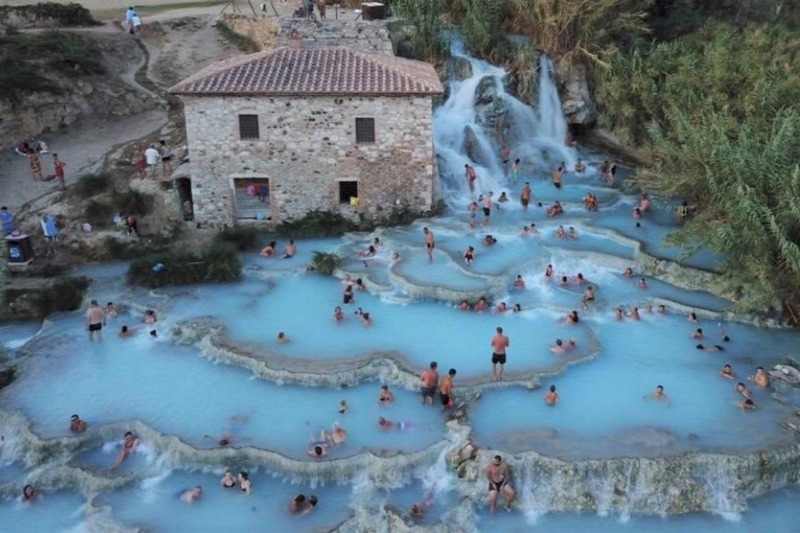 Másodpercenként 800 liter termálvíz folyik le a Monte Amiata lejtőin és tölti meg az olaszországi Saturnia termálforrás zsugorított medencéit. A 37 fokos kénes vízbe ingyenesen ülhetünk be, a közeli gyógyfürdőben pedig termálvizes kezeléseket kínálnak.