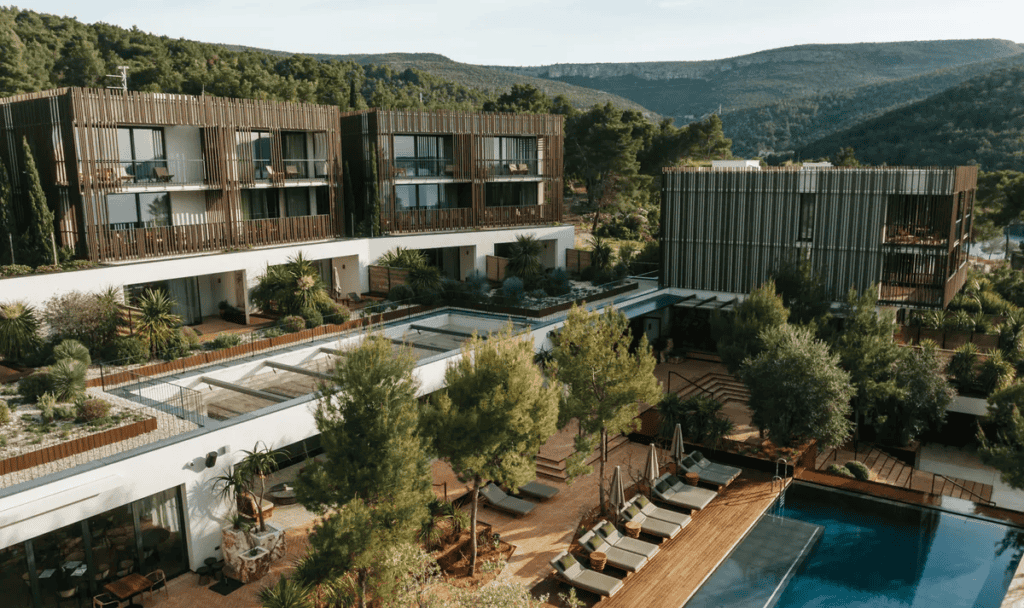 A Maslina Resort a fenntartható luxus példája: egyszerre természetközeli és minden részletében magas színvonalú. A szálloda Hvar szigetén, egy nyugodt öbölben helyezkedik el, távol a zajos tömegturizmustól, mégis elérhető közelségben a pezsgő éjszakai élethez. Letisztult, natúr anyagokat használó dizájnja, világszínvonalú wellnessrészlege és kiváló konyhája mind azt üzeni: itt tényleg fontos vagy. Egy hely, ahol lassabban telik az idő – és ez így van jól.