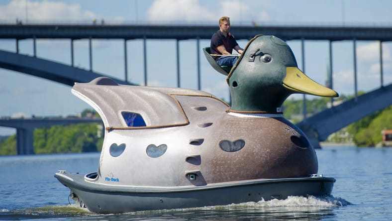 Christian Bohlin svéd hajókészítő egy kacsa alakú hajót tervezett, ami érdekes külseje ellenére nagyon komfortos, a kétágyas háló mellett konyha és szauna is van benne.