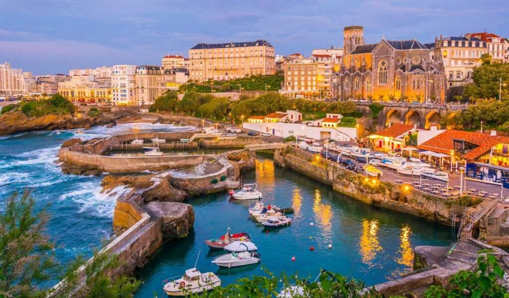 A város az Atlanti-óceán francia partjának egyik legszebb öblében, Dél-Franciaország baszk részén található. A strand olyan, mint valami képeslapfotó, balról és jobbról két keskeny sziklás kiszögelléssel keretezve a Pireneusok csúcsai magasodnak a láthatáron, a homokon színes csíkos sátrak és napernyők, szörfösök lovagolnak az Atlanti-óceán hullámain.