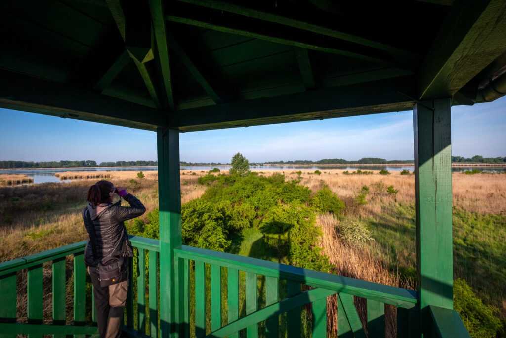 Az ugrai tavak egyike, a széles nádszegéllyel kísért Zöldhalmi-tó mellett egy szabadon látogatható megfigyelőtorony áll. Közelében halad el az Alföldi Kéktúra Biharugra és Szilaspuszta közötti szakasza. Aki ezt a szakaszt járja, annak érdemes egy kis kitérőt tenni a toronyig, de a madárvártától is húsz perc sétával ideérünk.