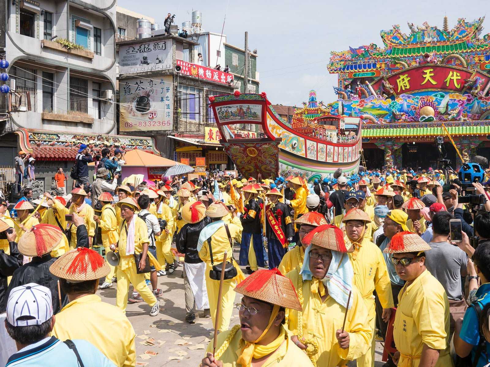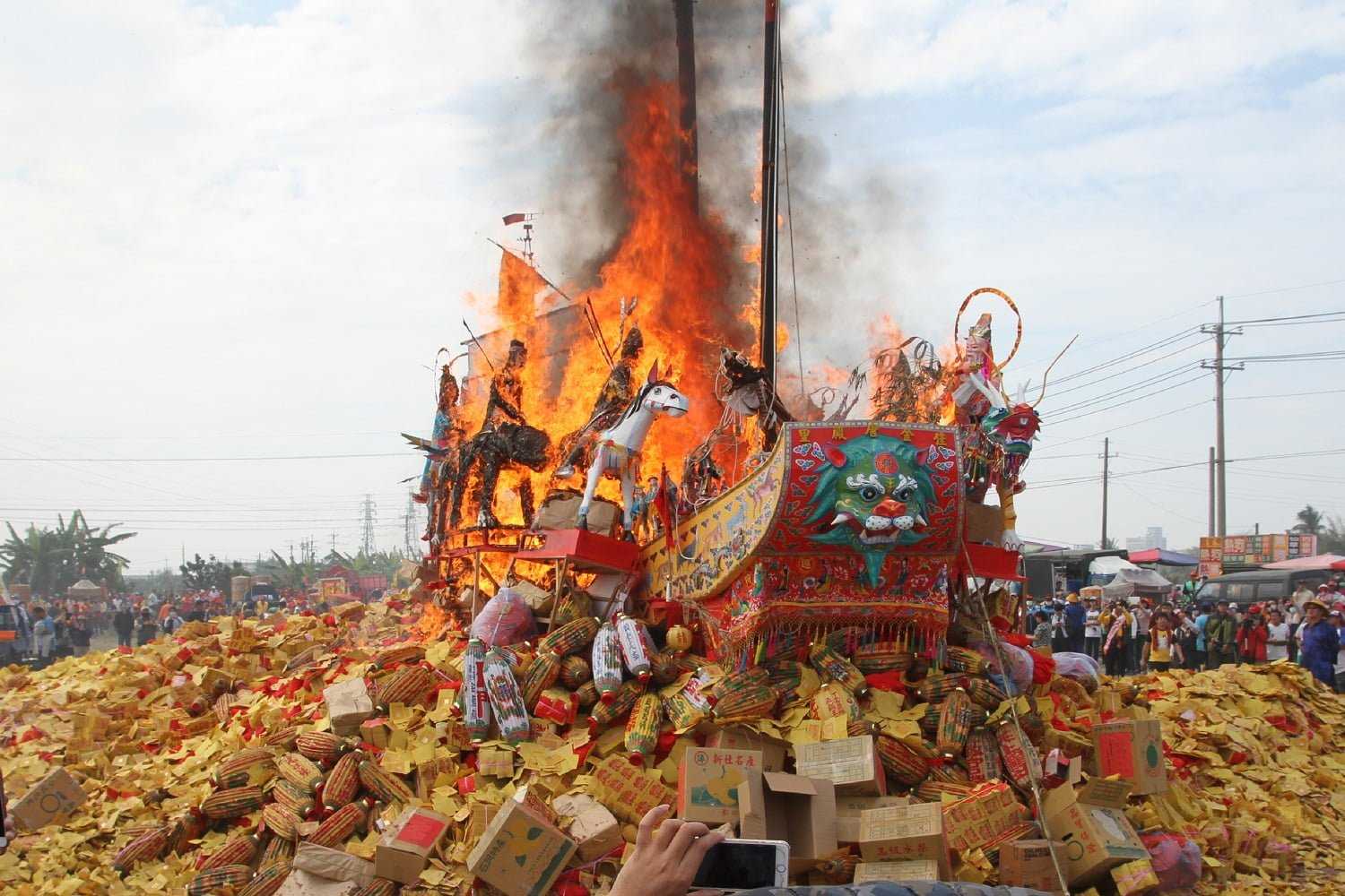 Több mint tízezer látogató vett részt Dél-Tajvanon az Égő Hajó Fesztiválon. A nyolcnapos taoista ünnep megkoronázásaként egy önkéntesek által épített díszes hajót vontatnak végig a városon, majd vízre bocsátják, és az est leszálltával meggyújtják.